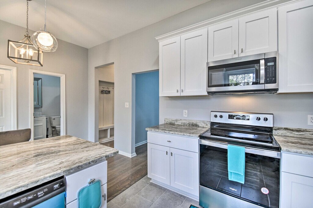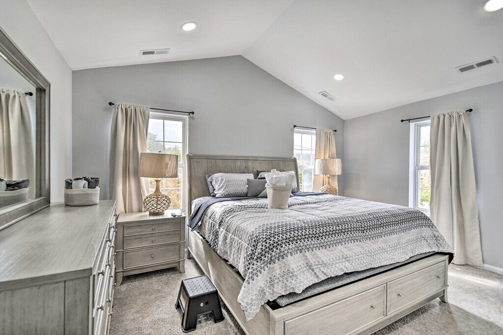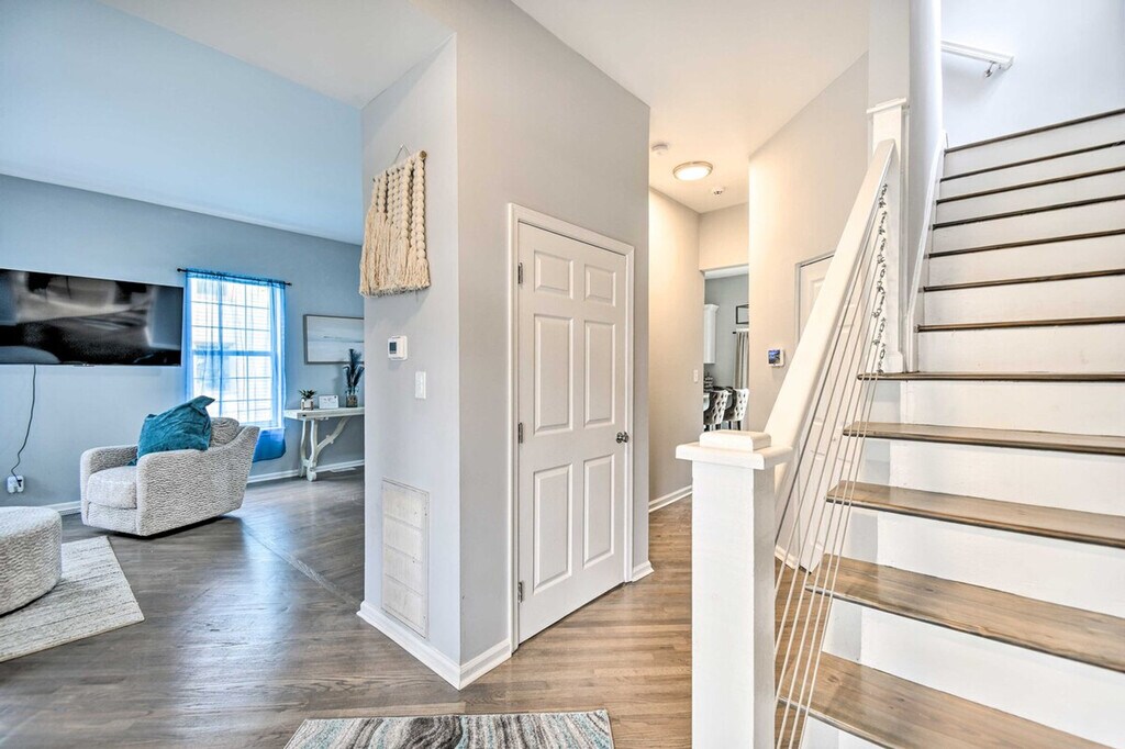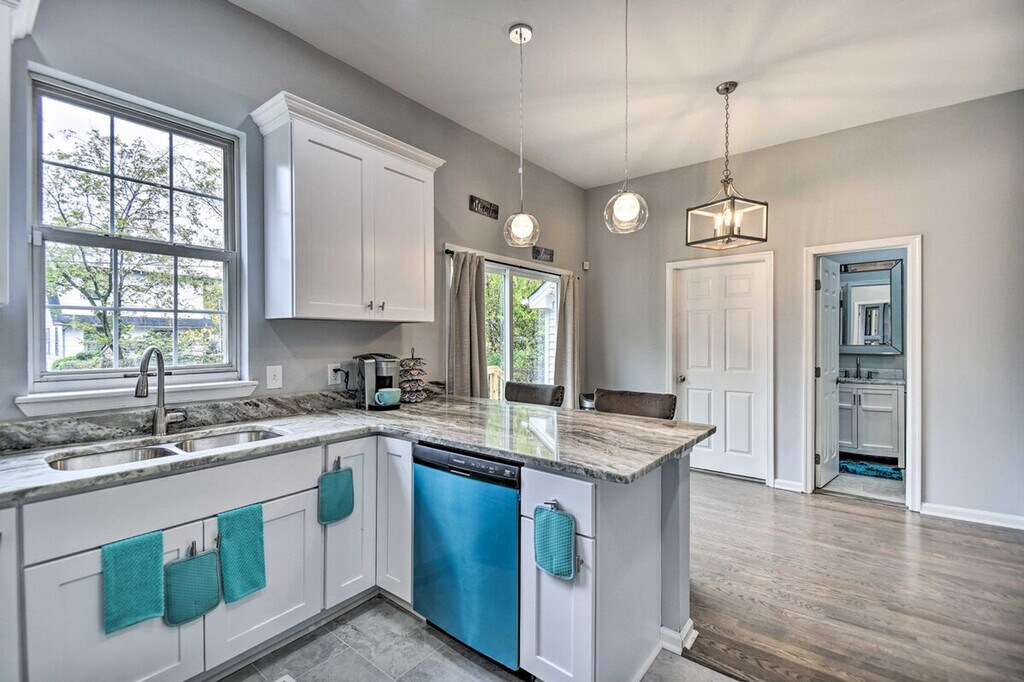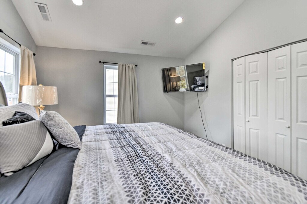 Experience all that Norfolk has to offer from this 3-bedroom, 3-bath vacation rental. Feel at home in this newly remodeled home. This home features 4 Smart TVs, a fully equipped kitchen, and in-unit laundry, offering everything needed for a stress-free stay with family or friends. The kitchen includes dishware, flatware, cooking basics, a full knife set, a Keurig coffee maker, and a microwave. Additional features include a dining room, dining table, breakfast bar, laptop workspace, remote controllable beds, ceiling fans, complimentary toiletries, and hair dryers. Parking is available in the garage for one compact vehicle and in the driveway for two vehicles. Take a stroll through Elizabeth River Park before heading to town for shopping or a bite to eat. Visit popular sites like the Chrysler Museum or Norfolk Botanical Garden. The Virginia Zoo is less than 2 miles away. This centrally located home also features a private yard. Access to the property is only by stairs, and while there is 1 bedroom located on the 1st floor, the remaining bedrooms are located on the 2nd floor and require additional stairs to access. Your safety matters. This property features 4 exterior security cameras and 1 doorbell camera. One camera is located above the garage facing out towards the driveway, 2 cameras are located on the back of the property facing out towards the backyard, 1 camera is located on the side of the property facing out towards the side yard, and 1 camera is a doorbell camera located next to the front door facing out towards the front entry area. These cameras do not look into any interior spaces and record sound and video when activated by motion and will be on during your stay. [SI]