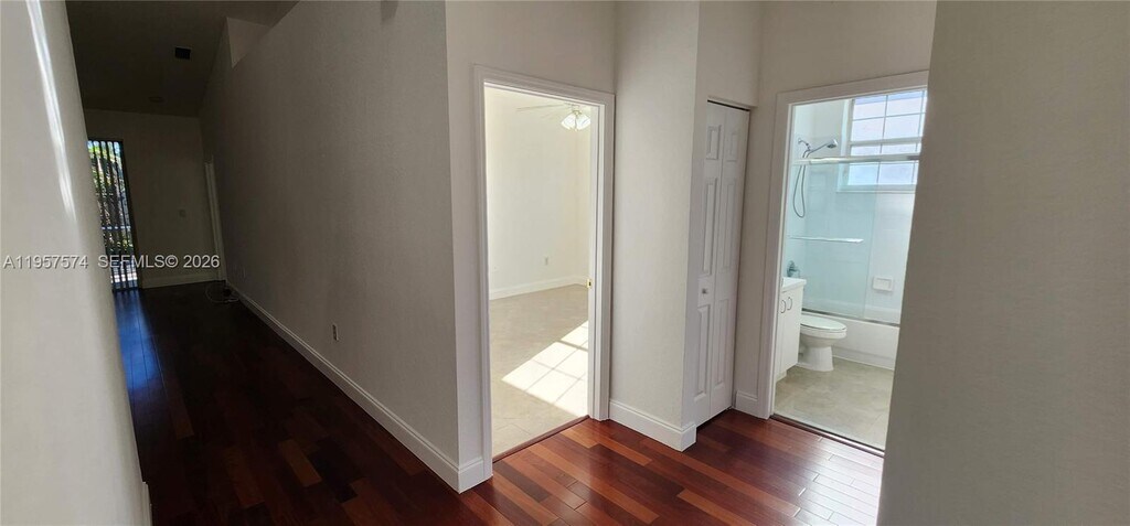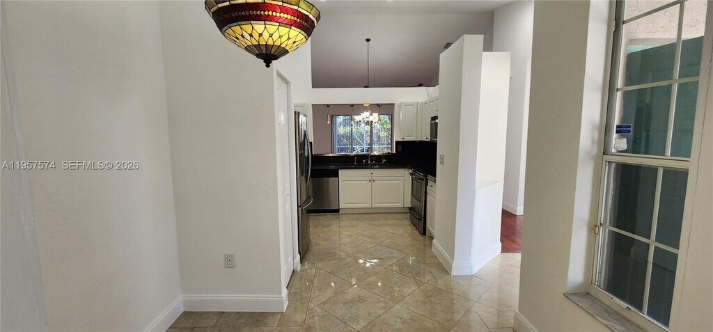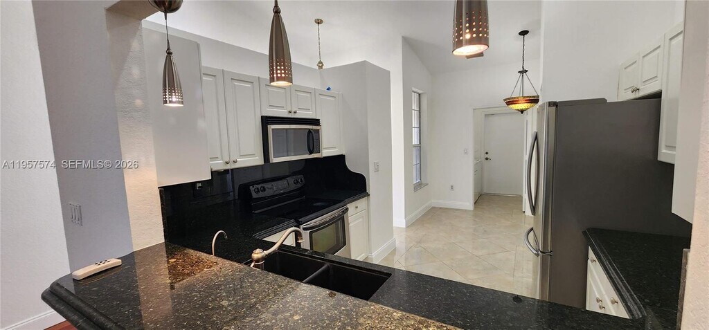 Beautiful and well-maintained 3-bedroom, 2-bath villa located in a private gated community, featuring a 2-car garage. This home offers a functional open layout with a kitchen equipped with granite countertops and stainless steel appliances, a spacious living and dining area, and a large primary bedroom with a walk-in closet. Vaulted ceilings with ceiling fans throughout enhance the sense of space. Cherry wood floors and porcelain tile add elegance and durability. Additional features include a full-size washer and dryer, a new A/C unit, and a very quiet neighborhood setting. Community amenities include a fitness center, two swimming pools, tennis courts, and a basketball court. Property will be delivered exactly as shown in the photos. A must-see. MLS # A11957574
