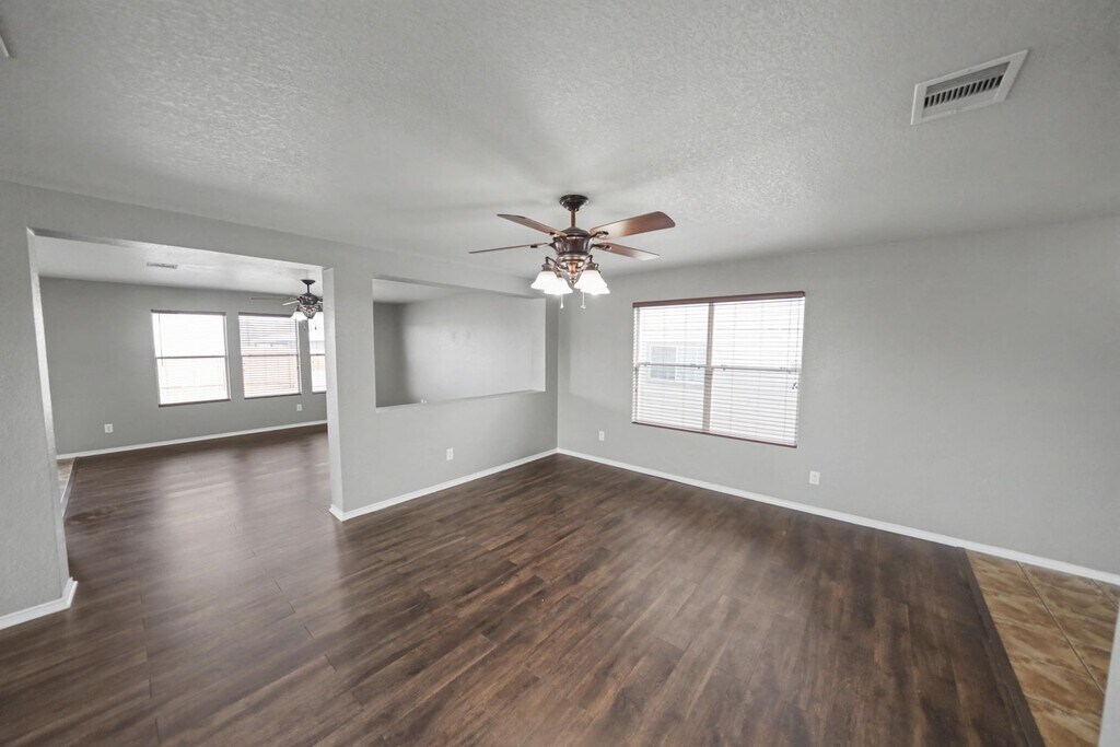Charming two-story home tucked away at the end of a quiet cul-de-sac in the quaint Bradbury Court subdivision. The welcoming entry opens into a spacious main living area that flows seamlessly into the formal dining space, featuring updated vinyl plank flooring throughout the main level. A secondary living area, separated by a half wall, opens to the kitchen, which comes fully equipped with all appliances, including a refrigerator-perfect for both everyday living and entertaining. All bedrooms are located upstairs, along with a versatile game room that offers additional living or flex space. The primary suite is generously sized and includes an en-suite bathroom with a single vanity and a tub/shower combination. Enjoy an oversized backyard with added privacy, as the property backs up to a greenbelt. This home is well laid out, private, and truly a pleasure to show.