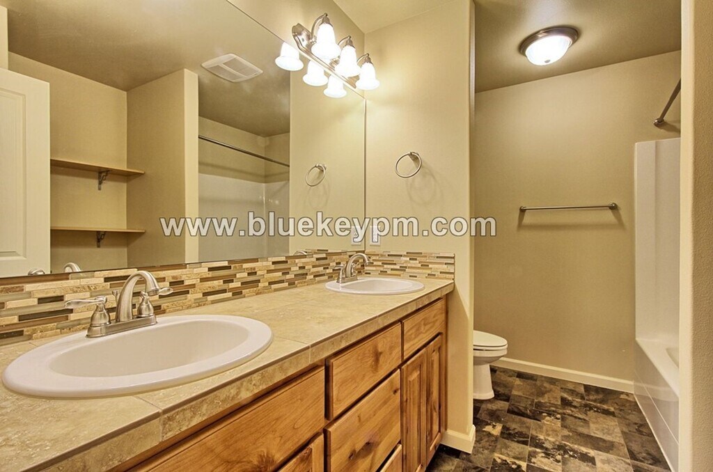 3 bed 2.5 bath home with easy access to I-5 and SR 500. Within walking distance of restaurants, fitness centers and shopping. This home has a great- room floor plan and showcases a corner gas fireplace with tile surround. The kitchen boasts plenty of cabinet space, pantry, engineered hardwood floors and an eatery bar. The fully fenced backyard with covered patio is a great place to entertain guests or barbecues. The bedrooms are spacious. The primary bedroom has a walk-in closet and bathroom with dual sink vanity and tub/shower combo. Convenience washer/dryer for your use. A/C or heat pump,. Gas forced air heat. 2 car garage. View our VIDEO tour on Applications are available at our website Call Blue Key Property Management, Inc. at to schedule a showing. $2395 Rent, $2395 Security deposit, $350 non refundable fee, $55 non refundable screening fee per adult age 18 and older. No pets please. Renter’s insurance required. For more information, rental criteria, video tours or online applications visit Blue Key Property Management, Inc. licensed in WA and OR. 7403 NW 1st Pl Vancouver WA 98665.