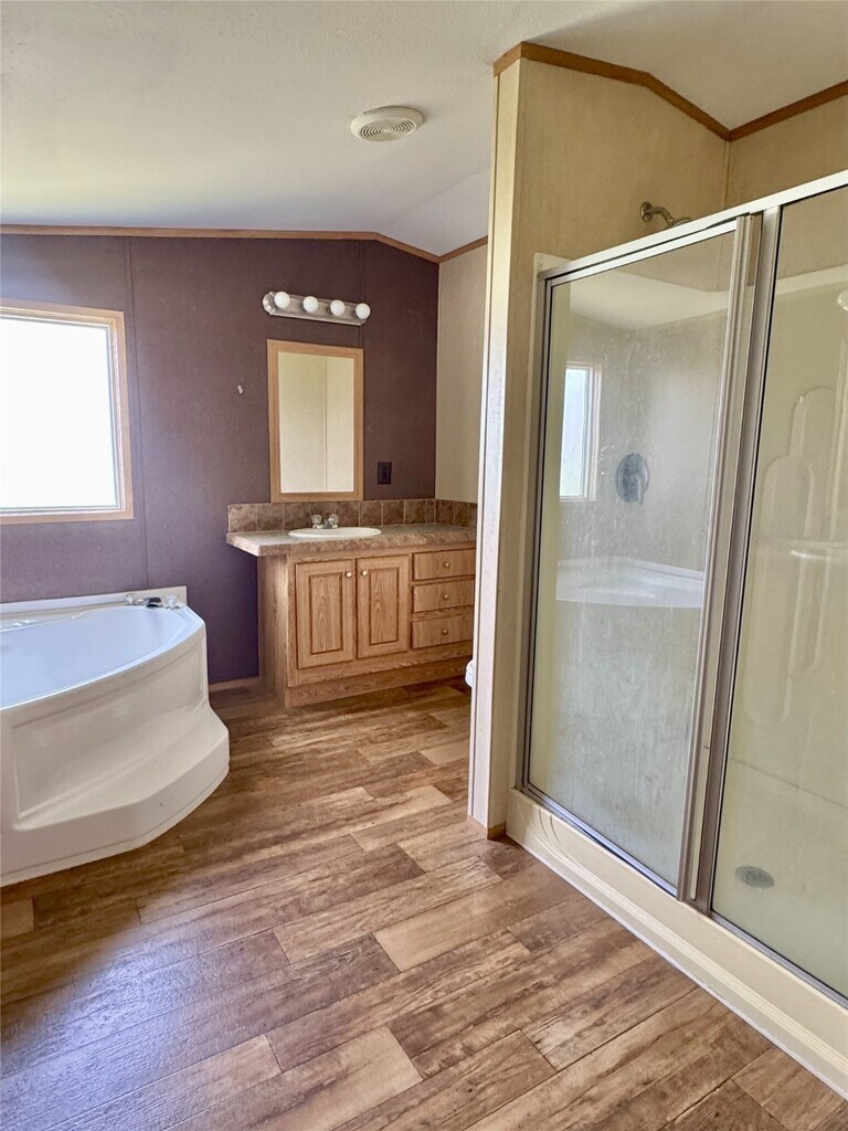 Ready to move in 3 bedroom,2 bath home on half an acre. Split bedroom floor plan. Master suite features two vanities,shower and separate tub,and walk in closet. Laminate flooring in bathrooms and kitchen,carpet in bedrooms and living area. MLS# 20775966