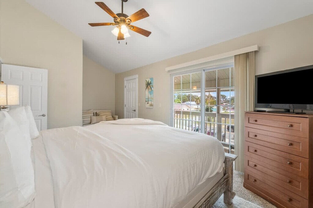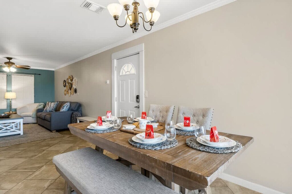 Feel at home in this charming, newly owned and upgraded townhouse, an ideal beachside retreat. Located just one block from the serene shoreline and steps from Rick Seltzer Park beach access, this home comfortably sleeps up to 8 guests and features two bedrooms, two full baths, a spacious living room with a sofa bed, a dining area, a kitchen, laundry facilities, a covered upper porch, and a fenced backyard. This newly renovated townhouse features new furniture, freshly painted walls, updated kitchen utensils, small appliances, beds, window furnishings, and outdoor furniture. The garage is stocked with beach chairs, toys, and other gear for you to enjoy during your stay. A fire pit and gas grill are available. A maximum of 2 pets are allowed with owner approval and a non-refundable pet fee of $175 for each animal per stay, up to 2 dogs with a maximum weight of 25 lbs per dog. No puppies are allowed. Propane for the fire pit and gas grill is the responsibility of the guests. With easy access to the white sandy beaches and emerald waters of the Gulf of Mexico, this townhouse provides a perfect combination of beach access, comfort, and convenience. It's located near dining, shopping, and family-friendly attractions like Wonder Works, mini golf, and arcades. Check-in is at 4 PM Central Time (5 PM during Spring Break and major holidays). [SI]