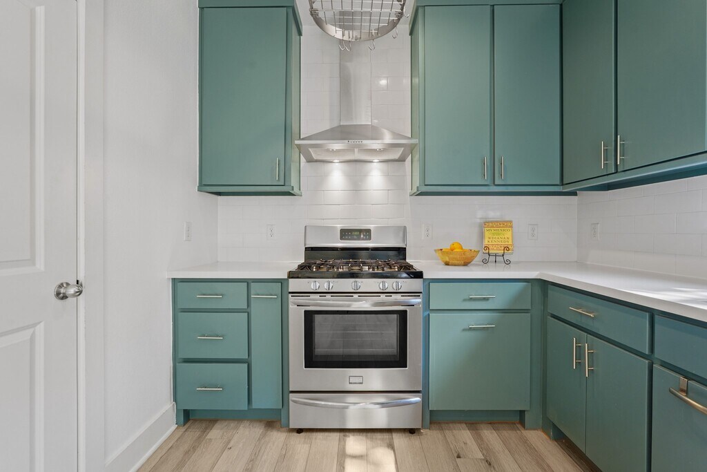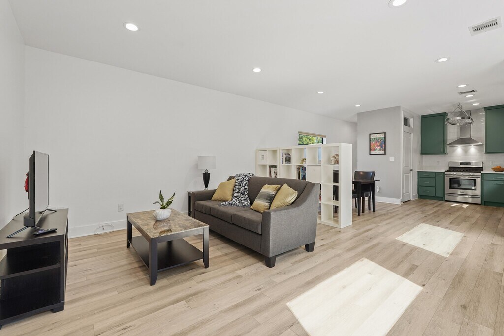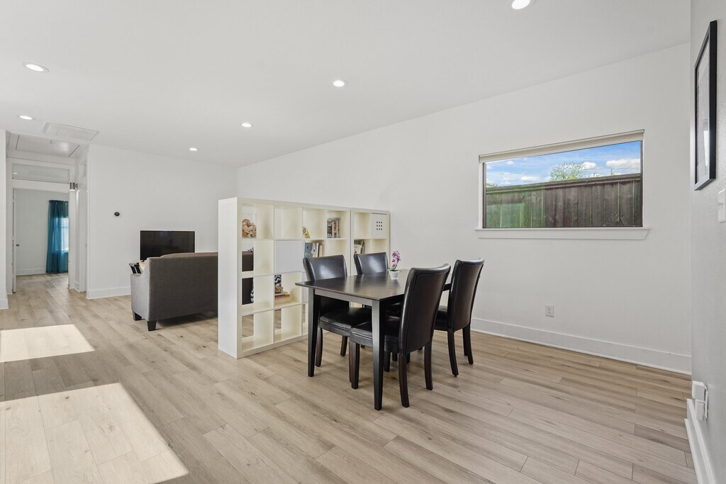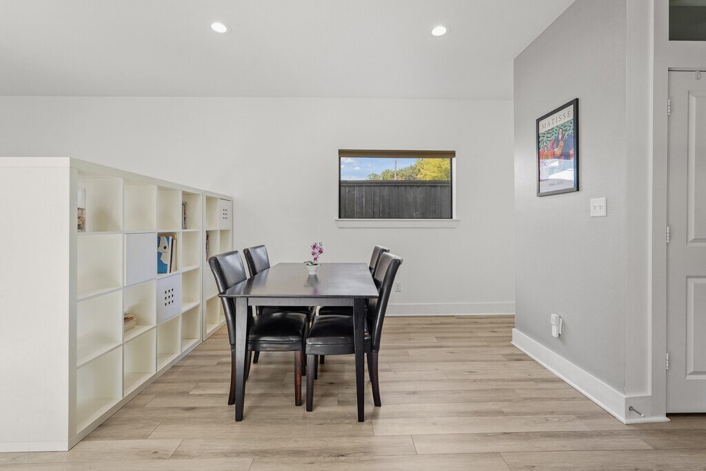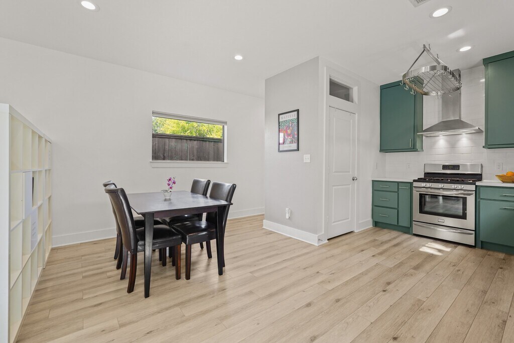 Charming 2-bedroom home with a covered porch and bright,open layout designed for comfort and style. Luxury vinyl plank flooring flows through spacious living and dining areas,while the kitchen shines with bold blue cabinetry,quartz countertops,stainless appliances,walk-in pantry,and overhead pot rack. The primary suite offers recessed lighting,a custom walk-in closet,and spa-style bath with dual quartz vanities,coordinating blue cabinetry,and a frameless glass shower with subway tile and mosaic accents. A versatile second bedroom is perfect for guests or a home office,paired with a sleek full bath nearby. Smart upgrades include programmable lighting,Nest thermostat,and Ring cameras. Out back,a private,low-maintenance yard with a tall privacy fence is perfect for pets. Just minutes from Downtown (15 min),the Medical Center (20 min) U of H (10 min),and major freeways,with cafés,restaurants,and shops just a short stroll away. MLS# 58341273