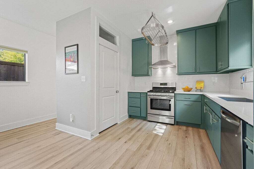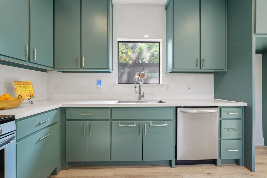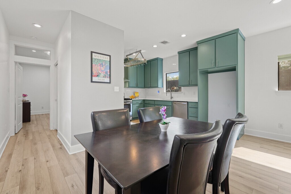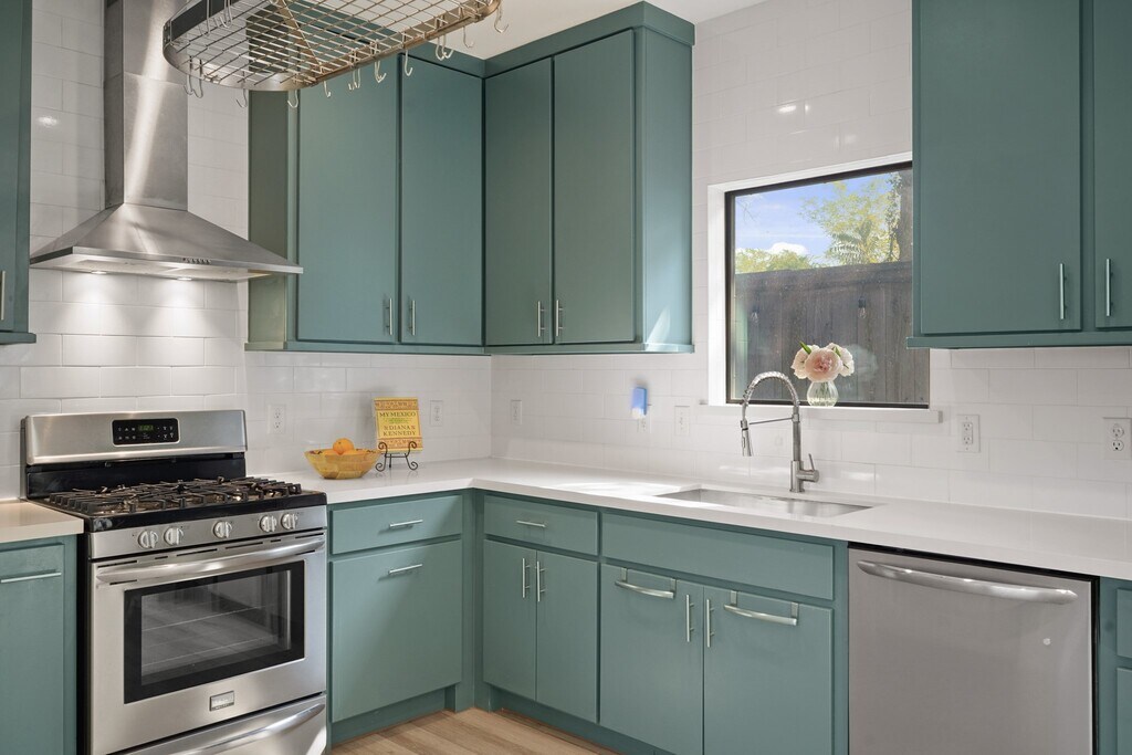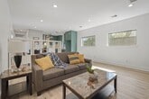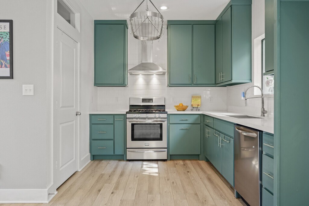 Charming 2-bedroom home with a covered porch and bright,open layout designed for comfort and style. Luxury vinyl plank flooring flows through spacious living and dining areas,while the kitchen shines with bold blue cabinetry,quartz countertops,stainless appliances,walk-in pantry,and overhead pot rack. The primary suite offers recessed lighting,a custom walk-in closet,and spa-style bath with dual quartz vanities,coordinating blue cabinetry,and a frameless glass shower with subway tile and mosaic accents. A versatile second bedroom is perfect for guests or a home office,paired with a sleek full bath nearby. Smart upgrades include programmable lighting,Nest thermostat,and Ring cameras. Out back,a private,low-maintenance yard with a tall privacy fence is perfect for pets. Just minutes from Downtown (15 min),the Medical Center (20 min) U of H (10 min),and major freeways,with cafés,restaurants,and shops just a short stroll away. MLS# 58341273