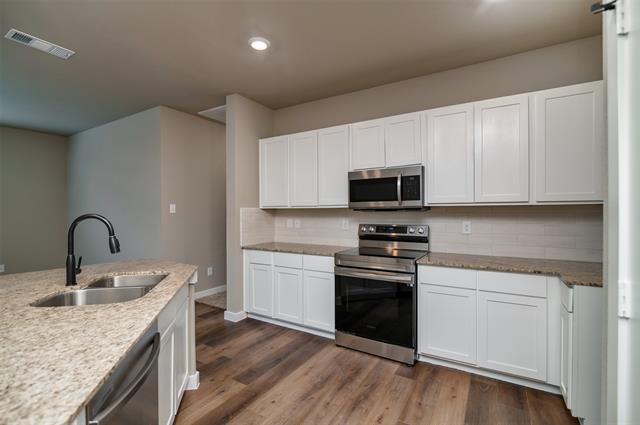 GORGEOUS 3 BEDROOM DUPLEX LOCATED IN MIDLOTHIAN ISD! This property is located in Venus, Texas within the prestigious Midlothian ISD and only a short 30 minute commute to downtown Dallas. Contemporary high end features include granite kitchen countertops, stainless steel built in appliances, upgraded cabinets, tiled back splash, undermount kitchen sink, upscale wood look vinyl plank flooring in living, dining and wet areas, upgraded carpet in bedrooms, walk in closets, large walk in shower in master bath, utility area with full size washer and dryer connections, 2 car front entry garage, beautifully landscaped with private fenced back yard. Professionally maintained front yard and sprinkler system.
