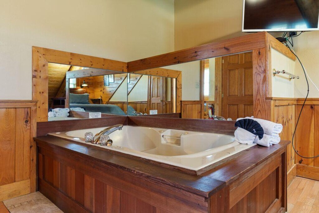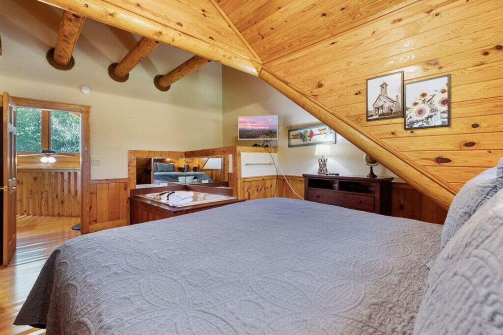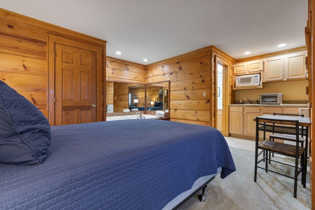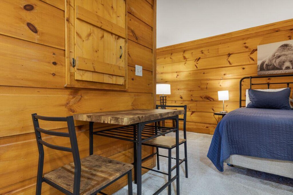 Escape to a Suite at Dollywood Lane, your perfect mountain retreat in the heart of Pigeon Forge. Nestled in nature, this charming cabin offers everything you need for a rejuvenating escape. Start your day sipping coffee on your private deck, taking in the serene surroundings. After a day of exploring local attractions, return to the comfort of your spacious bedroom suite, where you can unwind in a bubbling jet tub before bed. This cabin spans three levels, with the top level as the master bedroom, the middle level as the living and kitchen area, and the bottom level as the studio bedroom. For those seeking fun indoors, challenge your friends and family to an exciting round of arcade games. The outdoor grill invites you to cook up a delicious meal while enjoying the fresh mountain air. When you're ready to relax even more, the resort’s sauna and pool are just steps away, offering the perfect place to refresh and recharge. Dedicated parking for 2 cars is available on a first-come, first-served basis, with overflow parking at the pool located not far away. Located just 2.2 miles from Dollywood, this suite is perfectly positioned for exploring local attractions. Nearby, you'll find The Island in Pigeon Forge, Great Smoky Mountains National Park, Titanic Museum Attraction, Old Mill Square, LeConte Center, Gatlinburg Golf Course, Parrot Mountain and Gardens, and Pigeon Forge Snow, ensuring every moment of your stay is filled with adventure and discovery. Some of the mountain roads can be steep and winding, adding to the charm of being in the Smokies. Drive cautiously, especially if it’s your first time in the area, and give yourself a little extra time. No smoking is allowed, and any violation of the smoking policy will incur a $400 fine plus cleaning costs necessary to remove smoke odors from the unit and linens. No pets and no parties are allowed. A State Identification Card or Driver License copy will be requested upon booking. The cabin features air conditioning, a hot tub, a balcony, a deck patio, a grill, a kitchen, a fireplace, foosball, and a shared sauna and outdoor pool. [SI]