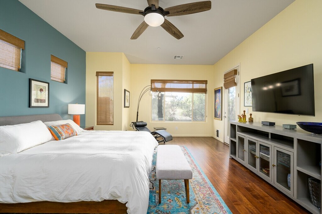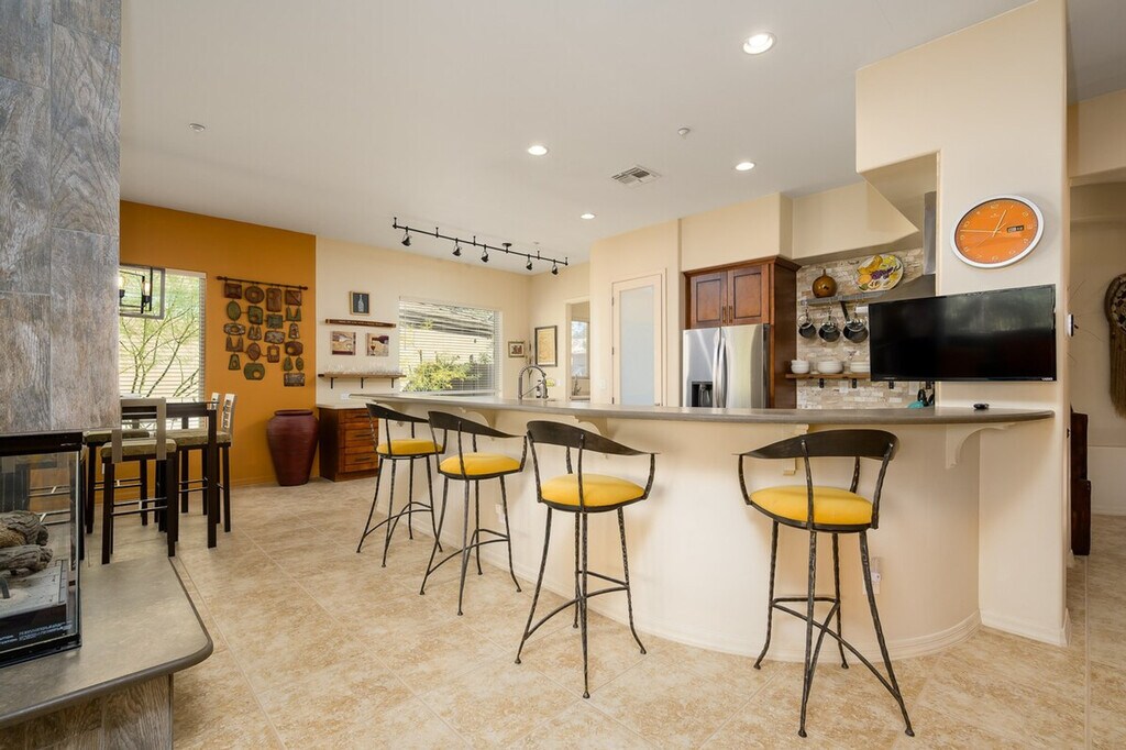 Welcome to Casa Winfield, a charming single-level home featuring three bedrooms and two and a half baths. Enjoy the convenience of a private backyard with BBQ and outdoor seating, perfect for relaxation and entertaining. Located in a gated community, this property offers easy access to a heated resort-style pool, gym, and fitness center, as well as hiking and walking paths. With a gas fireplace and a two-car garage, this home ensures comfort and convenience for your stay. This home boasts a spacious layout with all linens, bath, and pool towels provided. The fully equipped kitchen and in-unit washer and dryer make it easy to feel at home. Enjoy free Wi-Fi throughout the property. Pets are welcome with prior approval and a non-refundable pet fee of $250. Guests are responsible for a $75 refundable deposit to the HOA for gate remotes and clubhouse passes. A $300/month electric cap applies during the summer months from June through September, with guests liable for any overages. Situated just one block from the community amenities, Casa Winfield offers easy walkability to a media room, library with a pool table, and an on-site restaurant open for breakfast and lunch. The neighborhood provides a serene environment with access to eight tennis courts, including six hard courts and two clay courts. This property requires a 30-day minimum rental. Guests are liable for any damages caused to the property. The home is single-level with no stairs, making it accessible for all guests. Rates and availability are always up to date online. [SI]