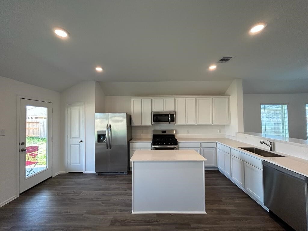 Stunning 4-Bedroom,2-Bath Single-Story Home for Lease! Step into this beautiful single-story home with a 2-car garage and an inviting entry foyer. On the other side,a spacious Family Room awaits,perfect for relaxing or entertaining. The modern kitchen is a chef’s dream,featuring designer cabinets,bright countertops,a breakfast bar,and top-of-the-line appliances. Retreat to the Master Suite with a luxurious separate tub and shower,a large walk-in closet,and a private entry to the laundry room for added convenience. Enjoy the outdoors in your fully sown yard or relax on the covered patio. With hard surface flooring throughout and a 16 SEER HVAC system,this home is as comfortable as it is energy-efficient. Move in today and start enjoying your dream home! MLS# 33007640