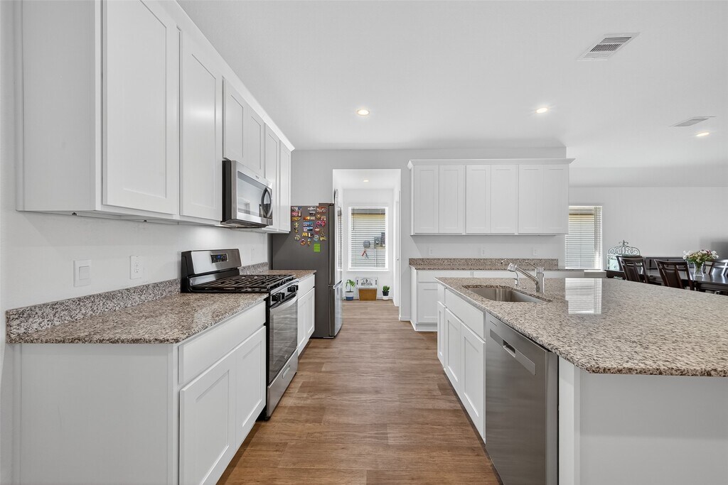 JUST ONE YEAR OLD!! WASHER/WASHER/REFRIGERATOR ALL INCLUDED. This beautiful 4-bedroom,2-bath home offers modern design,comfort,and style in the desirable Windstone on the Prairie community. Featuring an open-concept layout with high ceilings and abundant natural light,it’s perfect for both everyday living and entertaining. The gourmet kitchen boasts granite countertops,stainless steel appliances,and a spacious island. The primary suite includes a spa-like bath with dual vanities,a walk-in shower,and a generous walk-in closet. Additional bedrooms are versatile and ideal for guests,family,or a home office. Situated on a large lot,the property offers a spacious backyard with NO rear neighbors and a covered patio perfect for outdoor gatherings. Conveniently located near top-rated schools,shopping,dining,and major highways,this move-in-ready home offers an excellent location in Richmond. Smart Home System,which allows you to control lights,locks,& thermostats! NO FLOODING! MLS# 61575086