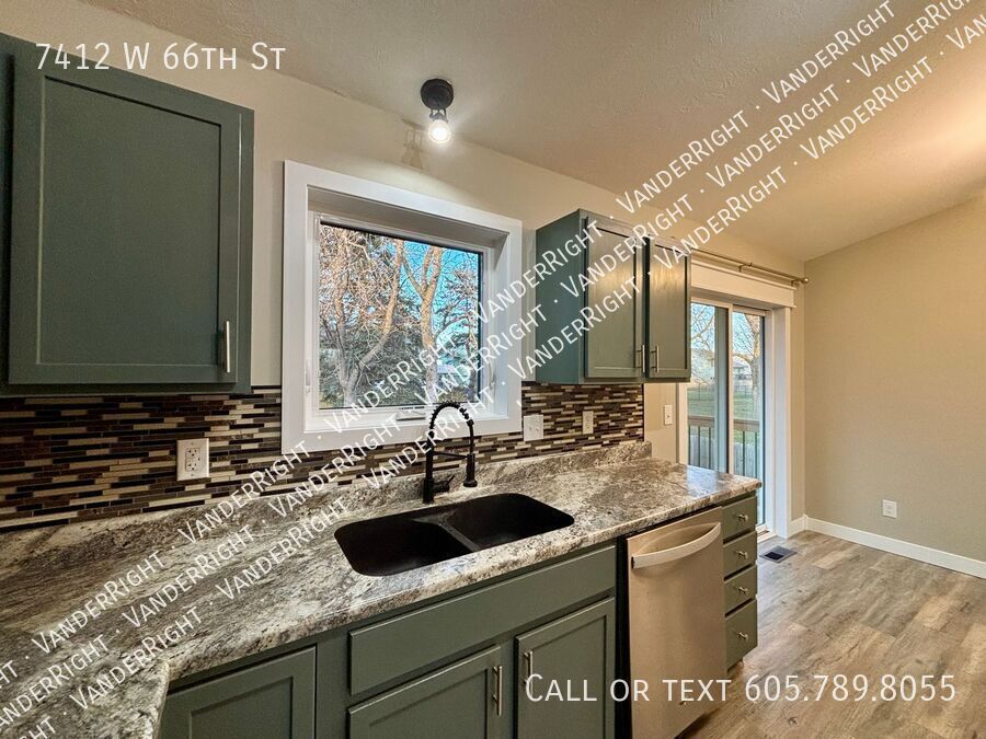 Discover comfort and convenience in this beautifully updated split-foyer home, located in a highly desirable Southwest Sioux Falls neighborhood. Enjoy a spacious fenced-in backyard complete with mature trees, a patio, and a deck—perfect for relaxing or entertaining. Inside, the home has been thoughtfully renovated with modern finishes, new flooring, fresh paint, and brand-new windows throughout. The kitchen offers ample room for a dining table, and the upstairs living room impresses with vaulted ceilings and an open, airy feel. Two generous bedrooms with large closets and a full bathroom complete the upper level. The versatile basement features space that can function as either two additional bedrooms or one bedroom with a second living area—whatever fits your lifestyle best. A second bathroom with a jetted tub provides a relaxing retreat, and the utility room includes a brand-new washer and dryer for added convenience. An extra-deep, attached two-stall garage rounds out this wonderful rental, offering plenty of space for parking and storage. This home is move-in ready and full of modern upgrades—don’t miss out! Pet friendly with no pet deposit and only $45/month for pet rent! (Dogs under 1 year do require a $500 pet deposit.) Professionally managed by VanderRight LLC None