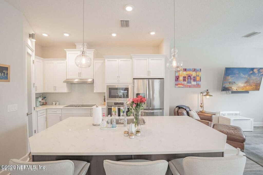 This stunning single family home in the exclusive community of Tidal Pointe will take your breath away! It boasts expansive 42'' white cabinets with an oversized,large white quartz island. The kitchen flows into the open family and dining room,along with the sliding glass door entering into your outdoor paved courtyard. This is the perfect home to entertain friends and family! Upstairs,you will find three large bedroom,loft space,and laundry. Enjoy the low maintenance lifestyle,with easy access to the St. Johns Town Center and all areas of Jacksonville. Community pool,walking trails,and 2 car attached garage. Tenants pays all utilities. MLS# 2132943