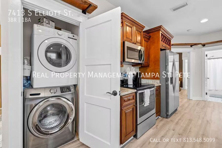 Enveloped in the historic beauty of Port Tampa, this meticulously renovated 1940s bungalow encapsulates a perfect blend of the past and present. It offers three well-appointed bedrooms and two modern bathrooms across an expanse of 1,160 sq ft. As you step inside, the open concept living area welcomes you with high ceilings and an abundance of natural light. The kitchen is a chef's delight, fitted with sleek stainless-steel appliances, under-cabinet lighting, and innovative raised outlets. A sliding barn door opens to a flexible space that can serve as a home office or an extra bedroom. The home extends outdoors into a private, fenced backyard adorned with lush landscaping, a chic paver patio, and a cozy firepit- perfect for intimate alfresco dining or entertaining evenings. Modern amenities such as the new LVP flooring, upgraded electric and plumbing, and an efficient HVAC system complement the aesthetics of the home. It is also freshly painted and meticulously kept dry and clean after storms. This magnificent gem of a home is being offered FULLY FURNISHED with a minimum lease period of six months. The home's prime location near Picnic Island Park/Beach, walking trails, parks, popular shops, highly rated schools, and MacDill AFB. Contact us right away to find out more about this stunning home.