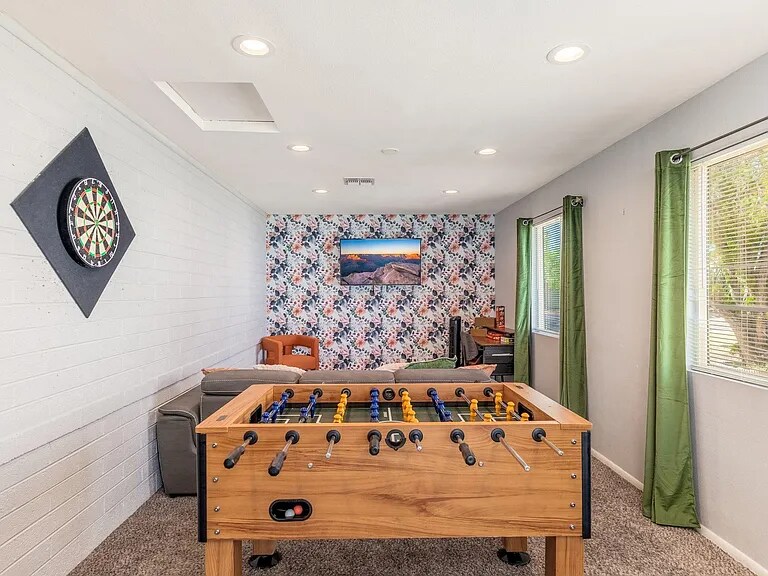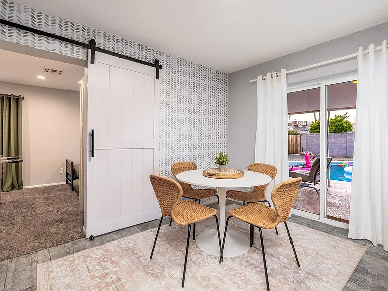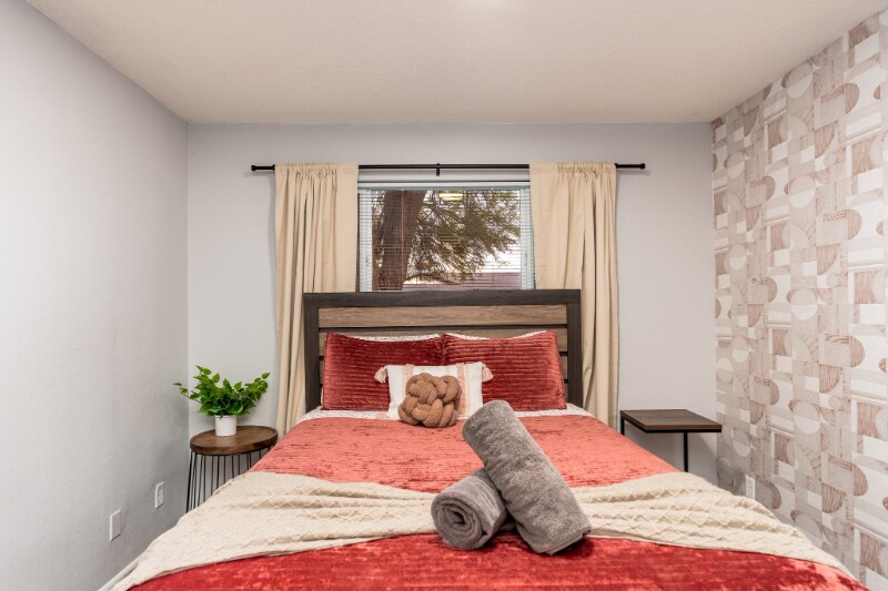 Property Id: 1545879 Fully Furnished, Heated Pool, Move-In Ready! Welcome to paradise in Scottsdale! This spacious 4-bedroom, 2-bathroom home accommodates up to 12 guests and is centrally located near Old Town Scottsdale (5 mins), downtown Phoenix (15 mins), and the airport (10 mins). Perfect for family, friends, or special occasions. Indoor Living: Sunlit living room with a sleek sofa bed and tasteful decor. The contemporary kitchen has modern appliances, a Keurig, and a breakfast bar open to the dining area. Bedrooms: Master bedroom: king-size bed and tranquil furnishings. Two bedrooms: versatile twin beds. Fourth bedroom: two twin beds, large pullout couch, and smart TV. Bathrooms: One with a shower/tub combo. One with a walk-in shower. Amenities: Washer and dryer, ceiling fans, central air, and a workspace. The fenced backyard includes a heated pool, outdoor dining, and a fireplace. Pets welcome. Minutes from Scottsdale's attractions, this home offers ease and enjoyment.