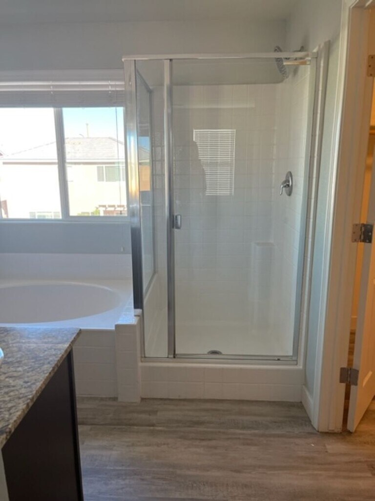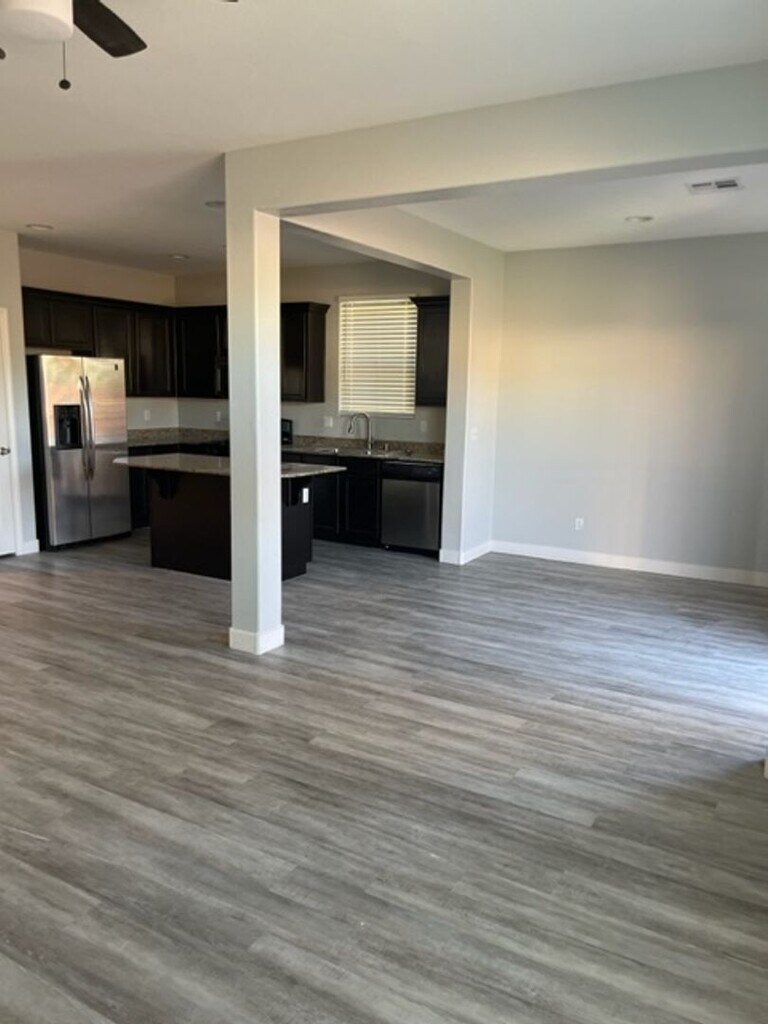 4 Bedroom Corner Lot in Mountains Edge. Open floorplan with Granite Kitchen and Espresso Cabinets. All appliances included. Luxury vinyl throughout entire house. Backyard has Turf.