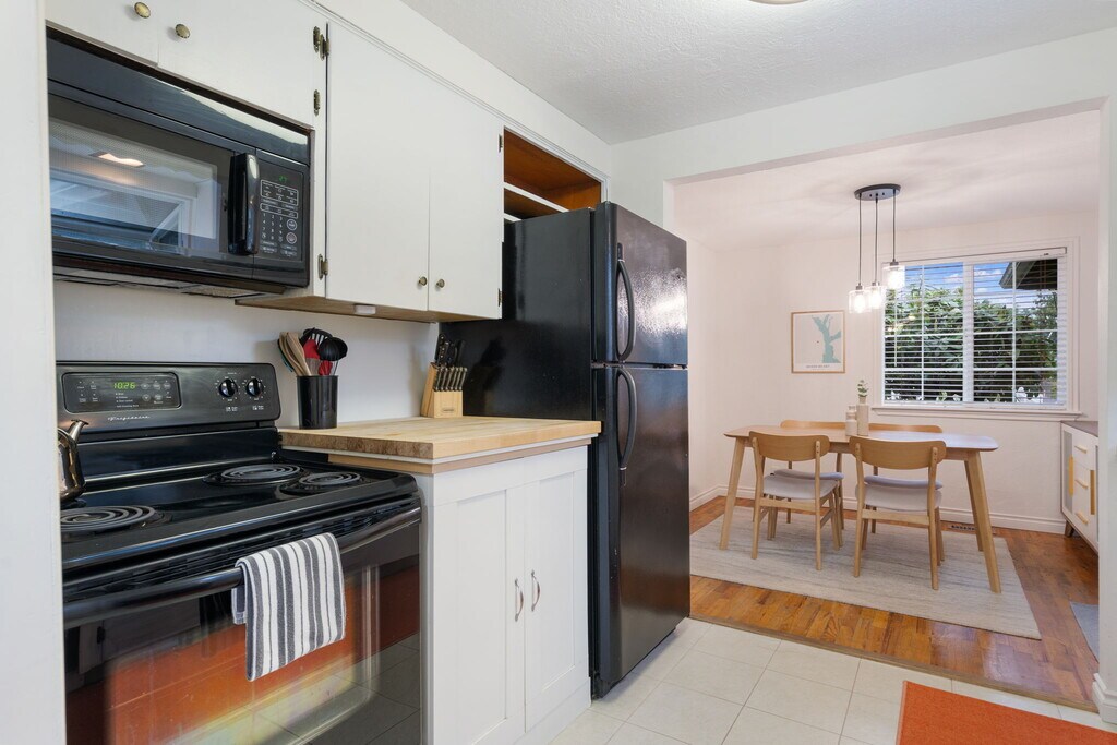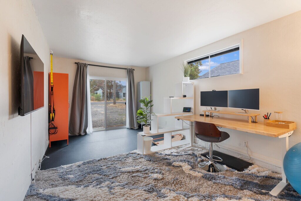 Monthly Rental – Cozy Portland Retreat with Patio & Grill – Dog Friendly Welcome to this warm and comfortable Portland retreat, available for monthly stays (30-night minimum). This classic single-level ranch offers the perfect blend of space, convenience, and neighborhood charm—ideal for relocating families, traveling professionals, or anyone seeking an extended stay in a peaceful part of the city. Inside, you'll find three well-appointed bedrooms and one bathroom, plus the added bonus of a dedicated office and workout room, making long-term stays both productive and comfortable. Bright, inviting living areas and a well-equipped kitchen create a welcoming atmosphere, while central heating and air conditioning (via an efficient heat pump) keep the home comfortable year-round. Step outside to a standout feature: a fully fenced backyard that's perfect for dogs. Enjoy raised garden beds, a gravel lounge area, and a spacious deck—ideal for morning coffee, outdoor dining, or unwinding after a long day. A large driveway provides ample off-street parking for multiple vehicles. Located in the Brentwood-Darlington neighborhood, this home offers a relaxed residential setting while remaining close to Portland conveniences. Brentwood City Park and Woodstock Park are just minutes away, providing great spaces for dog walks and fresh air. Nearby favorites include Keeper Coffee Co., Heart Coffee, Double Mountain Taproom, Assembly Brewing, and grocery options like New Seasons Market and Trader Joe's. Ogden Street is part of Portland's planned Greenway Project, designed to enhance walkability and bike friendliness while maintaining easy access to SE 82nd Avenue and Woodstock Boulevard. Whether you're here for work, relocation, or an extended visit, this dog-friendly property offers comfort, convenience, and a welcoming space to call home during your stay.