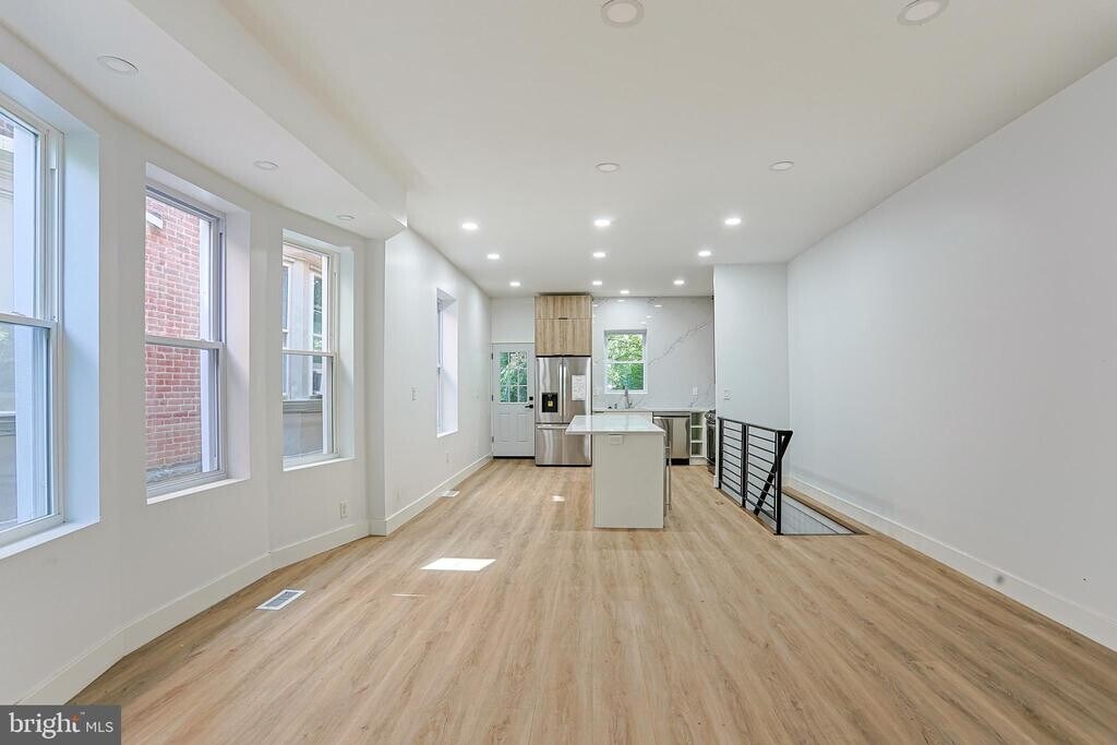 Welcome to a beautiful, newly remodeled home at 7415 Sprague St in the Upper East End of Mt. Airy. This home is set in a twin in a trendy and highly demanded area in Mt Airy. This location is perfect: on a quiet and popular block, rich with its lush greenery and old trees, and with its carefully maintained landscaping. The home is located a few steps away from the Mt. Airy train station. Its location is perfect for morning commuters. You are just a train ride away from Temple University, Center City, and the UPenn area. This home boasts space, utility, and contemporary design solutions. The first floor retains an open space design that gives its homeowner ample possibilities to shape and furnish it according to their needs. The kitchen space is defined by a long island with quartz countertops that contain plenty of cabinetry for your cooking needs. It hides very subtly the wine fridge, air dryer, and shelves. The cabinetry is designed in the European style, emphasizing simplicity, function, and high aesthetics. The backsplash is a stone plate sized to the top of the wall. The kitchen has modern stainless steel appliances, a gas stove, and a dishwasher. The main bedroom is located on the second floor in a master suite setting, with large closets and a bathroom shower. It impeccably follows the same principles of the home’s contemporary interior design and functionality. Another full bathroom is located in the second-floor hallway. It has a bateau tub, beautifully complementing the color and choice of tiles and faucets. The other two bedrooms boast a sense of space and comfort. Both floors are finished with high-quality engineered wood, pleasantly fitting the color pattern throughout the house. The basement is fully finished with an HVAC room and a full laundry room. The tenants can design it according to their preferences: office space, storage space, or a living room with potential for entertainment and play. The home is virtually staged and indicates its fantastic potential.