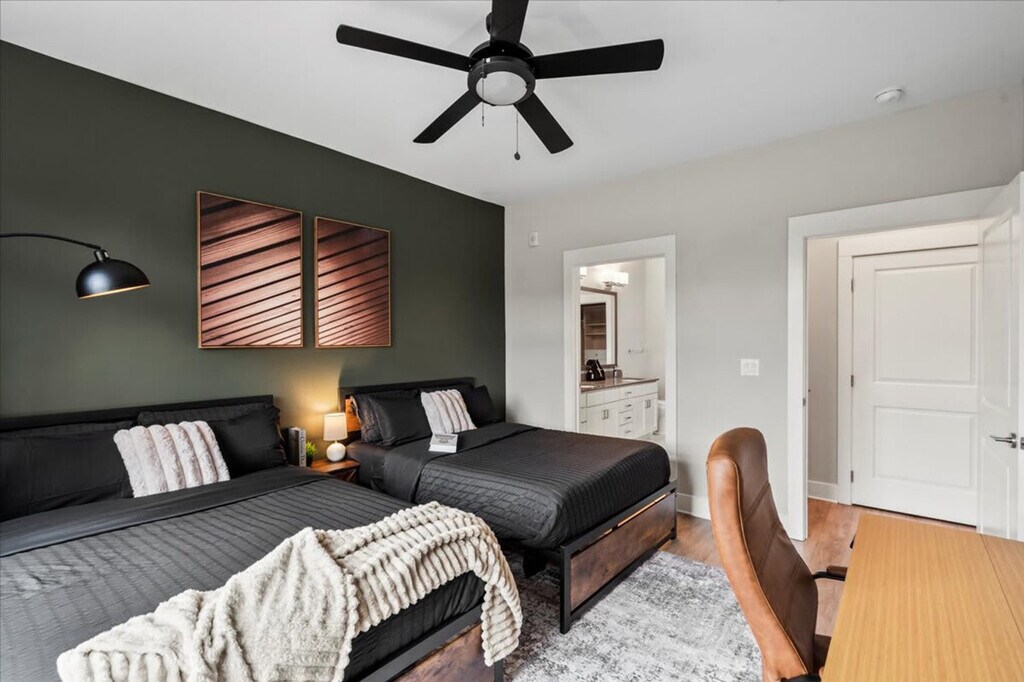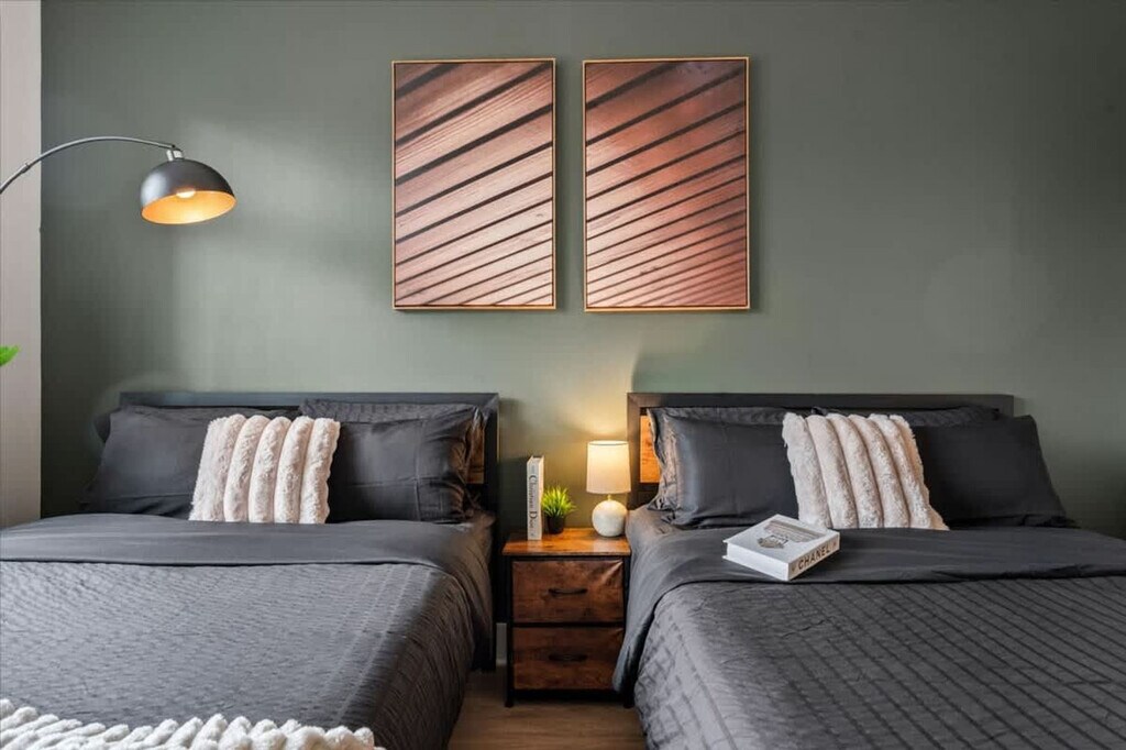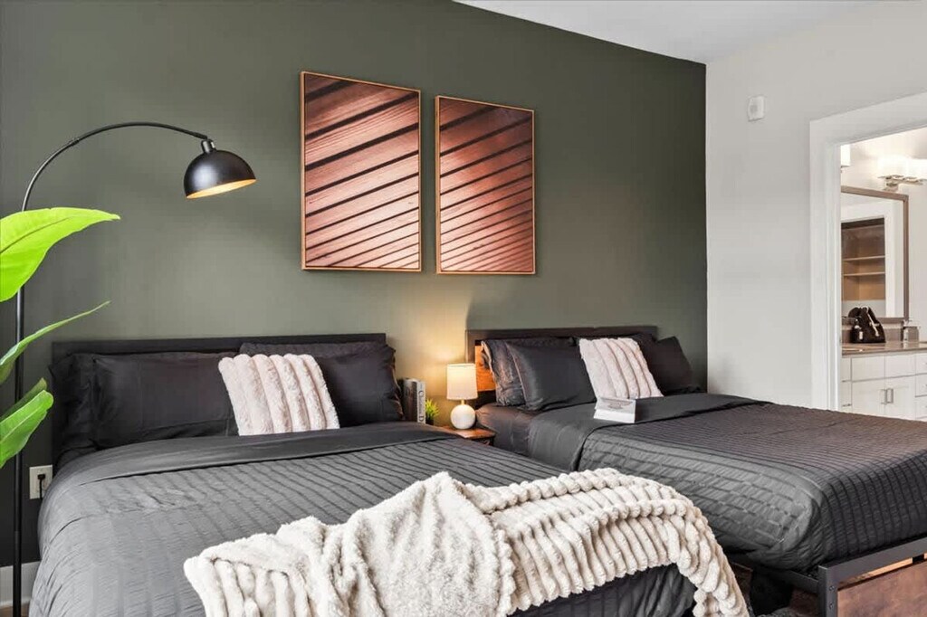 Stay in style in the vibrant city of Charlotte, home to the second-largest banking center in the USA. This classy 1084 sq. ft. 3-bedroom and 2-bathroom apartment features a king-size bed and two plush full beds for your comfort. With lightning-fast Wi-Fi, a convertible sleeper couch, and a fully equipped kitchen, this apartment is specially designed for your longer stays. Step out to a lively neighborhood, just minutes from Uptown Charlotte and steps from the best restaurants, cafés, bars, and shops. Begin your day with a perfectly brewed cup of tea or coffee from the convenient coffee station in your upscale kitchen. Whether you're here for business or leisure, this space is designed to provide the perfect balance of comfort and convenience. With vibrant restaurants just minutes away, you might find yourself exploring the culinary scene in Charlotte each night. After a long day, it’s reassuring to know that your well-equipped kitchen and elegant dining table are ready to provide a 5-star dining experience right at home. Step inside and discover an inviting open-concept living area, elegantly furnished to provide a blend of relaxation and functionality. Large windows flood the space with natural light, while modern décor and high-end finishes create a sophisticated yet comfortable atmosphere. Free on-site parking is available on a first-come, first-served basis. We welcome up to two pets per reservation, each weighing under 35 lbs. A fee of $49 per pet is charged for stays of 1–6 nights, with additional charges for longer stays. For pets over 35 lbs, a one-time $49 large pet fee applies for one pet, and $95 for two larger pets. Bringing undisclosed pets into the unit may result in a minimum $500 fine and cancellation of your stay without refund. Optional mid-stay cleaning is available for $175, which includes new linens, surface cleaning, and trash removal. Situated in a vibrant neighborhood, this property places you within minutes of top attractions, dining, and nightlife. Enjoy easy access to Waverly and Rea Farms for premier shopping, dining, and entertainment. Indulge in top-rated eateries like The Porter’s House and Café Monte. Explore scenic trails at Four Mile Creek Greenway and Colonel Francis Beatty Park. Tee off at Raintree Country Club and TPC Piper Glen. A 20-minute drive takes you to Uptown Charlotte, the heart of the city’s business and entertainment district. Enjoy easy access to Spectrum Center and Bank of America Stadium, and Charlotte Douglas International Airport is just a 25-minute drive away. This apartment enforces a strict no-smoking policy inside the unit. Quiet hours are from 8 PM to 8 AM to ensure a peaceful stay for everyone. Unauthorized guests will result in a $500 fine per person, immediate removal from the property, and cancellation of the reservation without refund. Self check-in is available with a keyless smart lock for a seamless arrival. Guests will check in independently using a smart lock or lockbox, and some properties may require downloading an app for Bluetooth access. Detailed check-in instructions will be sent via email or message before arrival. The apartment is remote work-friendly, featuring a dedicated work station with a standing desk, perfect for remote work. Enjoy fast Wi-Fi at 300+ Mbps, ideal for streaming, remote work, or video calls. [SI]