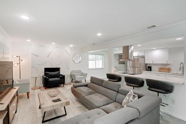 Do not miss this one! Fully Furnished and fully equipped Executive Rental with a pool, now available for immediate lease! Perfect for corporate housing, relocation, or short-term stays, this stunning two-story home offers 2,089 SF of modern luxury with 5 bedrooms, 2.5 baths, and a 2-car garage. Step inside to experience a beautifully renovated interior, designed with style and comfort in mind. The living room welcomes you with a dramatic floor-to-ceiling marble fireplace, creating an elegant focal point for the space. The designer kitchen features stainless steel appliances, quartz countertops, and a breakfast bar that opens seamlessly to the living room - ideal for everyday living and effortless entertaining. The dining area is filled with natural light and thoughtfully positioned for gatherings. The primary suite includes a walk-in closet and a modern full bath. Upstairs, four additional bedrooms share an updated hall bath, offering both functionality and comfort for families or groups. Luxury vinyl flooring runs throughout the home, complemented by sleek tile in the bathrooms. Step outside to your private oasis - complete with a sparkling swimming pool, outdoor seating, grill area, and plenty of space to relax or entertain. Rent includes all furnishings shown in the photos, TVs, a fully stocked kitchen, bedding, linens, and all major appliances. You only need to bring your personal items. Experience luxury, privacy, and designer living at its finest. Schedule your private tour today!