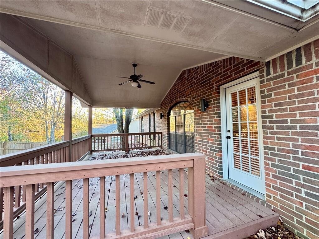 Great East Fayetteville location! This well-kept 4BR home welcomes you with a charming covered entry surrounded by mature trees and landscaping. Inside, a bright foyer opens to a spacious living room with faux-wood flooring, tall ceilings, a brick fireplace, custom built-ins, and an adjoining dining room. The kitchen offers a breakfast nook, bar seating, and a pantry, with extra storage and accent lighting throughout the home. 4 bedrooms feature soft carpet, and the primary suite includes an oversized walk-in closet and a vanity area separate from the tub/shower. Enjoy a large covered back deck overlooking a huge fenced yard, plus a roomy 2-car garage and extended drive. Prime location just minutes to Gulley Park, Lake Fayetteville Trail, Botanical Garden of the Ozarks, the Razorback Greenway, shopping at Evelyn Hills, and quick access to the University of Arkansas. MLS# 1329366