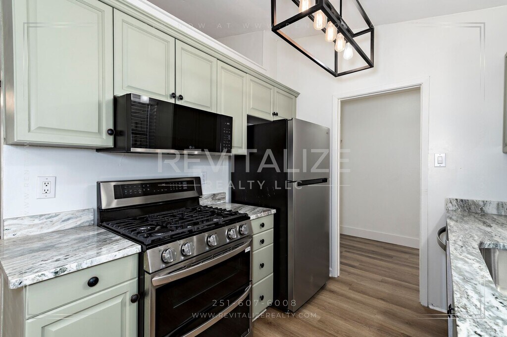 Welcome home to this beautifully remodeled 4-bedroom, 2-bathroom residence offering 1,500 sq ft of comfortable, modern living. The home features luxury vinyl plank flooring, tile flooring, and new fixtures throughout, creating a fresh and stylish feel. The kitchen is thoughtfully designed with granite countertops, a gas range, stainless steel refrigerator, microwave, bay window, and a walk-in pantry, making it perfect for both everyday living and entertaining. The primary suite includes a walk-in closet and a beautifully finished walk-in shower, while the additional bathroom offers a tub/shower combination with a sliding door and handheld showerhead. Enjoy the convenience of in-unit laundry with washer and dryer hook-ups in a dedicated laundry room. Outside, relax or entertain in the covered patio, overlooking a large, fenced yard—ideal for outdoor enjoyment. Additional features include ceiling fans, window treatments, a paved driveway, and plenty of space to make this home your own. Located in the Melrose neighborhood, just off Airport Blvd! - 2 miles from Elsie Collier Elementary School - 2 miles from Bernice J Causey Middle School - less than 1 mile from Baker High School - 6 miles from University of South Alabama - 9 miles from Spring Hill College - 3.5 miles from Target, Walmart Supercenter, The Home Depot, AMC Mobile 16 - 2 miles from Mobile Regional Airport - 3 miles from Bowlero Mobile - 4 miles from Mobile Flea Market - 7 miles from Greater Gulf State Fair/The Grounds Participation in the Housing Choice Voucher (HCV) Program is not available for this property. For more information or to schedule a viewing, please call . You may apply at: Application Fee: $75 (Per applicant, non-refundable. All adult residents (18+) must be on the lease and are required to submit an application. Minimum requirements are 620+ credit score, verifiable income of 3x the rent or more, and must pass a background check. No exceptions.) Security Deposit: $1,900 (Due upon application approval.) Rent: $1,800/mo RBP: $50/mo At Revitalize Realty, we strive to provide an experience that is cost-effective and convenient. That’s why we provide a Resident Benefits Package (RBP) to address common headaches for our residents. Our program handles insurance, pest control, air filter delivery, utility set up, credit building, and rent rewards, at a rate of $50.00/month, added to every property as a required program. More details upon application. Total Monthly Payment (Rent + RBP)*: $1,850 *If you provide your own insurance policy, the RBP cost will be reduced by the amount of the insurance premium billed by Second Nature Insurance Services (NPN No. 20224621). Administration Fee: $100 (Due upon lease signing.) Pets: $300 pet non-refundable fee (per pet with Owner approval, up to 2 pets) Tenant is responsible for power, water, gas, and yard care. Disclaimer: Any lease commencing between the present date and February 28, 2026, will include a minimum term ending on or after February 28, 2027. Please inquire for additional details. Residents will have access to the Online Portal by AppFolio, an easy, fast, and secure way to pay charges online, view payment history, and submit maintenance requests. Access your Online Portal from any mobile device by downloading the mobile app from the App Store or Google Play. **Approval is at the discretion of the Landlord or Property Manager.** Managed by Revitalize Realty, LLC