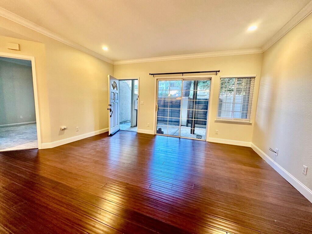 Downstairs, single story 2 bed/ 2 full bath Excellent, newly updated home! Ready today! Beautiful wooden floors, open concept modern living area with lots of windows. Beautiful kitchen, dining and living room. Stainless steel appliances, Modern fridge, granite countertops. Private patio surrounded by Redwoods and flowers, a few minutes walk to Lincoln Ave restaurants and shopping. Quick drive to Downtown San Jose, Airport, Tech Companies! Spacious bedroom suite with ample closet space. 2nd bedroom is large with lots of windows. Inside laundry. Freshly painted and brand new carpets in the bedrooms. Detached garage. This home feels comfortable and looks beautiful too!