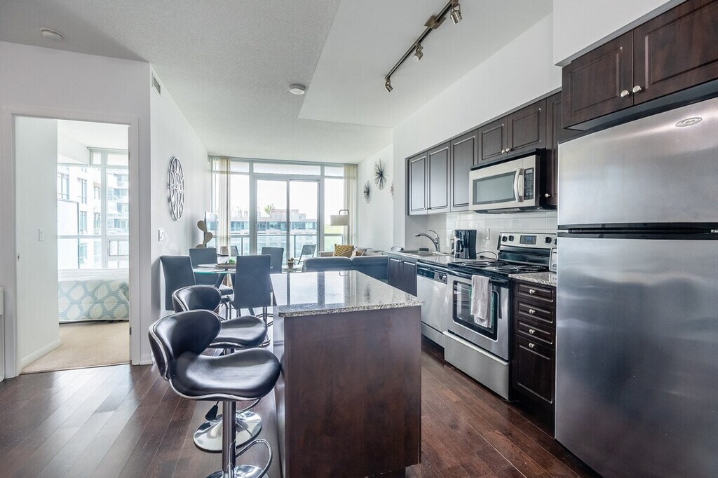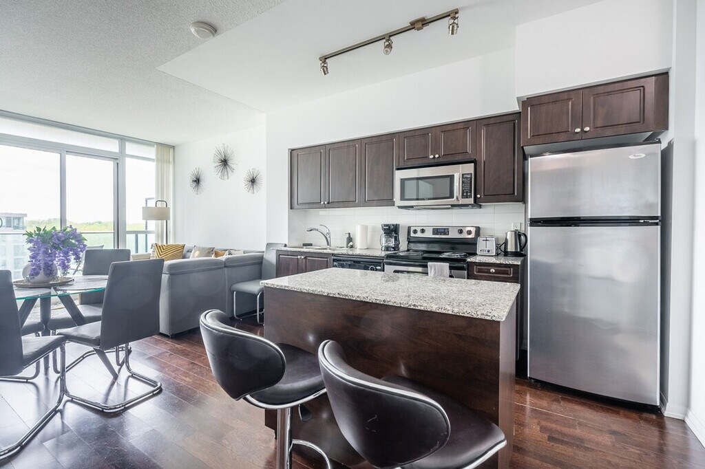Feel at home in this newly renovated 1-bedroom plus den apartment, located in a boutique building in the heart of trendy Downtown. This bright unit has floor-to-ceiling windows and an open concept layout. This comfortable suite has everything you need to feel right at home, including a fully functional kitchen with tea, coffee, a kettle, coffeemaker, and toaster. A washer and dryer with supplies are available for your convenience. The bathroom includes towels, shampoo, conditioner, body wash, a hair dryer, and other toiletries. Paid underground parking with in/out privileges is available upon request for $20 per night ($10 CAD if you book 15 nights or more). Please request in advance as it could be booked. Pets are allowed with a fee of $10 per night for 1 pet. A travel crib (for baby 0-18 months) and bed rails are available for $5 per item per night; please book in advance. Guests have access to a gym, indoor pool, hot tub, and sauna in the building. The apartment is located steps away from Toronto's best restaurants, shops, and entertainment. According to the condo rules, information about guests must be provided to the condo management prior to arrival, including names, ID details, and vehicle and license plate numbers (if parking is required). Guests whose names or ID do not match the information given are not allowed into the building. Guests need to be 18 or over in order to check in. Sending a selfie with your ID in your hands is required as an anti-fraud measure. Registration Number: STR-2304-GVPHHV [SI]