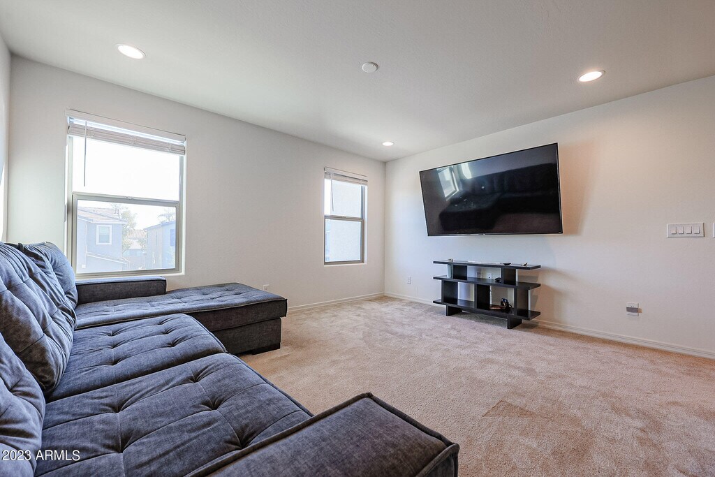 Welcome to the beautiful community of Santolina. This newly built single family home has much to offer. Three bedrooms,two and a half bathrooms,plus a loft area great for a home office,second entertainment area or gaming pad. Open concept kitchen perfect for entertaining. This private backyard with a covered patio,synthetic grass,and a sparkling blue pool is perfect for hosting fun barbecues. Community provides a playground,picnic area,& basketball court. Apply today!