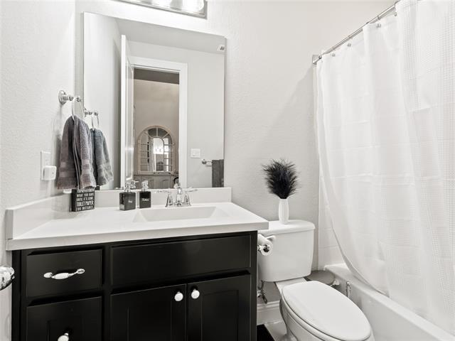 Welcome to this charming and well-maintained property that offers an open and functional floor plan that seamlessly connects the living, dining, and kitchen areas—perfect for everyday living and entertaining. The kitchen features ample cabinet space, a spacious island, and the refrigerator is included. This home offers excellent flexibility with a secondary bedroom and full bathroom located on the first floor, ideal for guests, multigenerational living, or a second private home office. The primary suite provides a comfortable retreat with a well-appointed ensuite bathroom, while the additional bedroom and game room upstairs offer plenty of space for family or work-from-home needs. Enjoy the outdoors on the covered patio, perfect for relaxing and watching sunset. Located in Tavolo Park, this home offers the convenience of a charter school within the community (Great Hearts Lakeside) and additional charter options nearby including Fort Worth Academy and Trinity Valley School both just 5 minutes way. You’ll also appreciate the easy access to shopping, dining, and major highways, making commuting and errands a breeze.