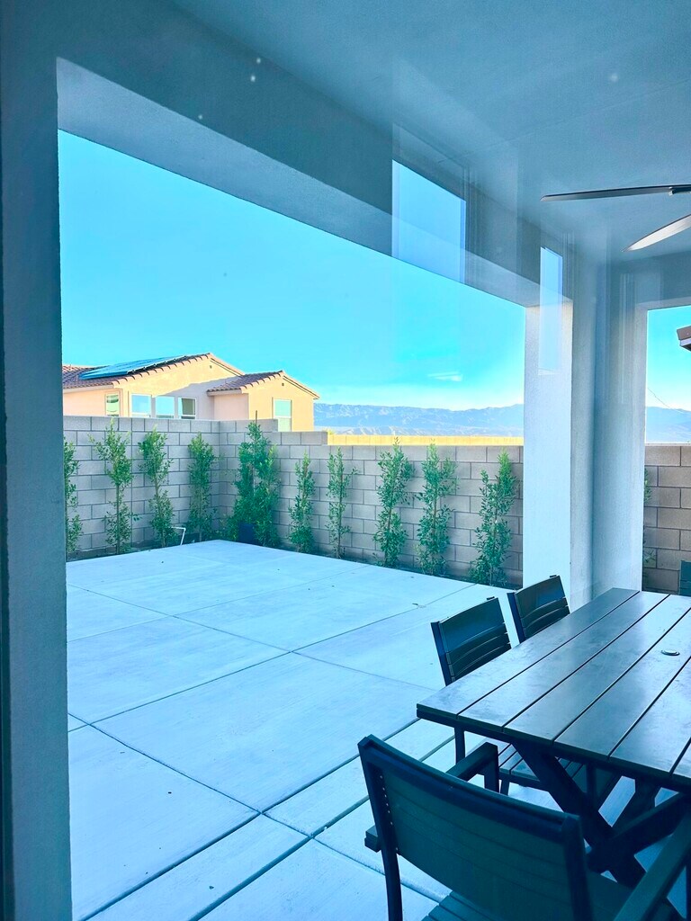 New construction 4-bedroom,4.5-bath home with an additional private 2-room casita. Located in NOVA at University Parkone of Palm Desert's newest resort-style communitiesthis modern two-story home offers bright,open-concept living with seamless indoor-outdoor flow. Large sliding doors lead to a finished backyard with open sky and mountain views. The main home features a beautifully designed kitchen with a large central island,modern finishes,and generous storage throughout. The open layout connects the kitchen to the dining and living areas,creating an ideal space for everyday living or entertaining. Upstairs,the spacious primary suite includes a large walk-in closet and a luxurious bathroom with a standing shower,soaking tub,and dual vanities. The secondary suite offers its own private bathroom,perfect for guests or family. Two additional junior bedrooms with full closets share a well-designed full bathroom that includes two separate vanities for added convenience. A full-size laundry room sits on the bedroom level for easy access. The private detached casita includes a separate entrance,living/sleeping area,kitchenette with mini-fridge and microwave,its own laundry hookup,and a full bathroomideal for multigenerational living,long-term guests,a home office,or a next-gen suite. This home also includes full solar,a home battery system,and EV charging,offering excellent energy efficiency and meaningful savings on utilities. Residents enjoy access to The Grove,a premier resort-style center featuring multiple pools (lap,adult & kids),spas,fitness center,pickleball,bocce,fire pits,a clubhouse,and a shaded playground. Centrally located near shopping,dining,hiking,golf,and major travel routesall within a peaceful Palm Desert setting