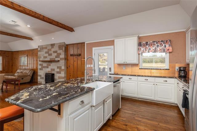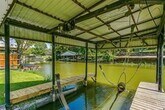 Discover this serene lakefront retreat, where rustic charm meets modern comfort. This spacious home is designed for seamless indoor-outdoor living, making it great for both relaxing and entertaining. This updated lakefront 3-2 home comes complete with a private dock and boat slip. The open-concept living area features rich wood floors, striking wood-paneled accent walls, and exposed wood beams that add warmth and character. The kitchen is a chef's delight, offering abundant cabinetry, a stunning dark granite island with farm sink & ample seating, and stainless steel appliances including a built-in wine refrigerator, and a convenient kegerator. It's the perfect hub for casual meals or serving guests. A custom-built dining area adds both elegance and functionality. Outdoors, mature post oak trees provide natural shade and beauty as you make your way to the covered dock, complete with a private boat slip for your water adventures. Spend your days boating, fishing, or simply enjoying the beautiful scenery. This home offers a unique blend of cozy, rustic details and practical, updated amenities, all set in a tranquil lakeside environment. Not to mention the refrigerator, washer, and dryer are included, making this move-in ready lakefront gem the perfect retreat for year-round waterfront living! Fireplace is decorative only and not for tenant use. Owner must approve all pets. 12 month lease term only.