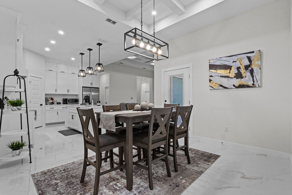 Lease this extravagant 3BD/2BTH/2GAR with 1,786sf of living space. Newly built and lightly lived in, with soaring vaulted ceilings, and custom features you'll be sure to love! Tile flooring throughout, quartz countertops, and soft neutral tones set the theme. Large master suite with 2 closet spaces, double vanity sinks, and walk-in shower. Large quartz island in kitchen overlooking the open living area & dining. Laundry room. And a privacy fenced backyard with wood picket fence. Call today to schedule your showing! *House can be leased fully furnished for $3,000 monthly.