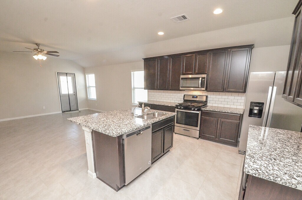 Jackie WallmanLook no further! Cozy 3 bedroom home ready for move in! This home features tile flooring throughout main areas. Formal dining room upon entry. Island kitchen with granite counter tops, tile backsplash and stainless steel appliances. Refrigerator, Washer & Dryer included with home! Spacious living room with plenty of natural lighting. Large primary with large walk in closet and luxurious bath with double sinks, separate tub/shower. Nice size secondary rooms. Relax out back under the covered patio. Plenty of backyard space! Come see today, you don't want to miss out on this home.
