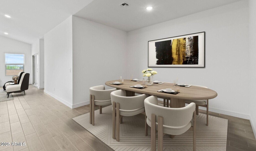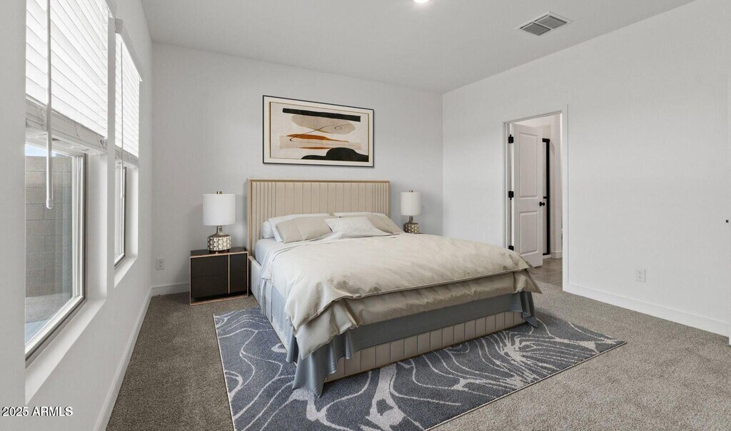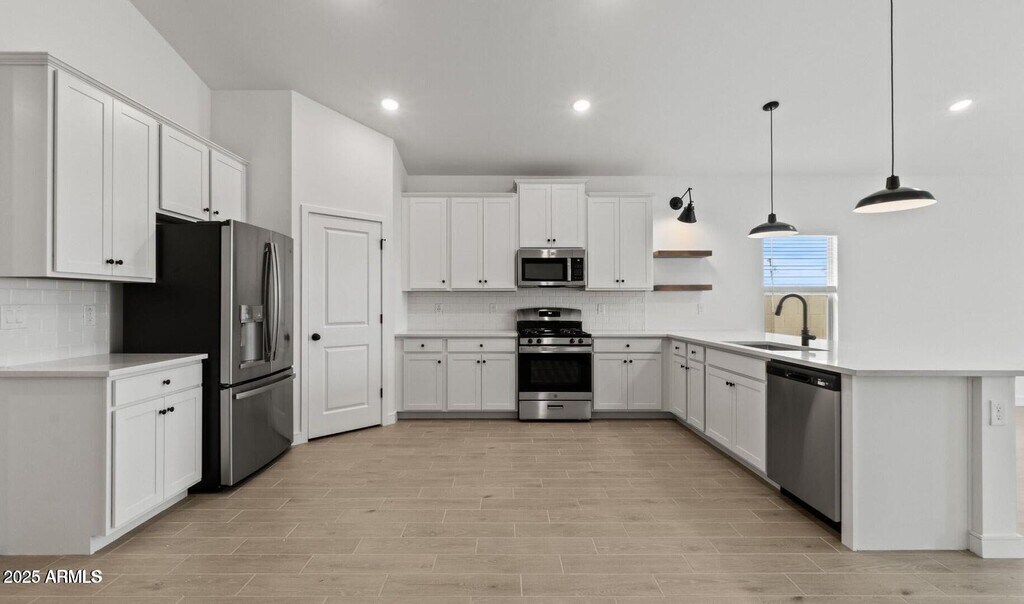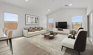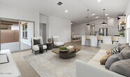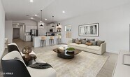 This spacious Orinoco plan offers 5 bedrooms and 3 full baths with Farmhouse-inspired interior selections throughout. The gourmet kitchen features White cabinets with Flat Black hardware,Cararra Miska quartz countertops,and stainless-steel appliances,including the refrigerator. The open great room flows into the dining area and covered patio,perfect for entertaining or relaxing. A split floorplan offers added privacy,while the primary suite includes a large walk-in closet and spa-like bath. With faux wood blinds,washer,and dryer included,this home is move-in ready.