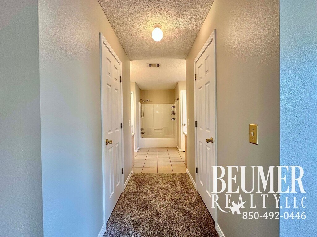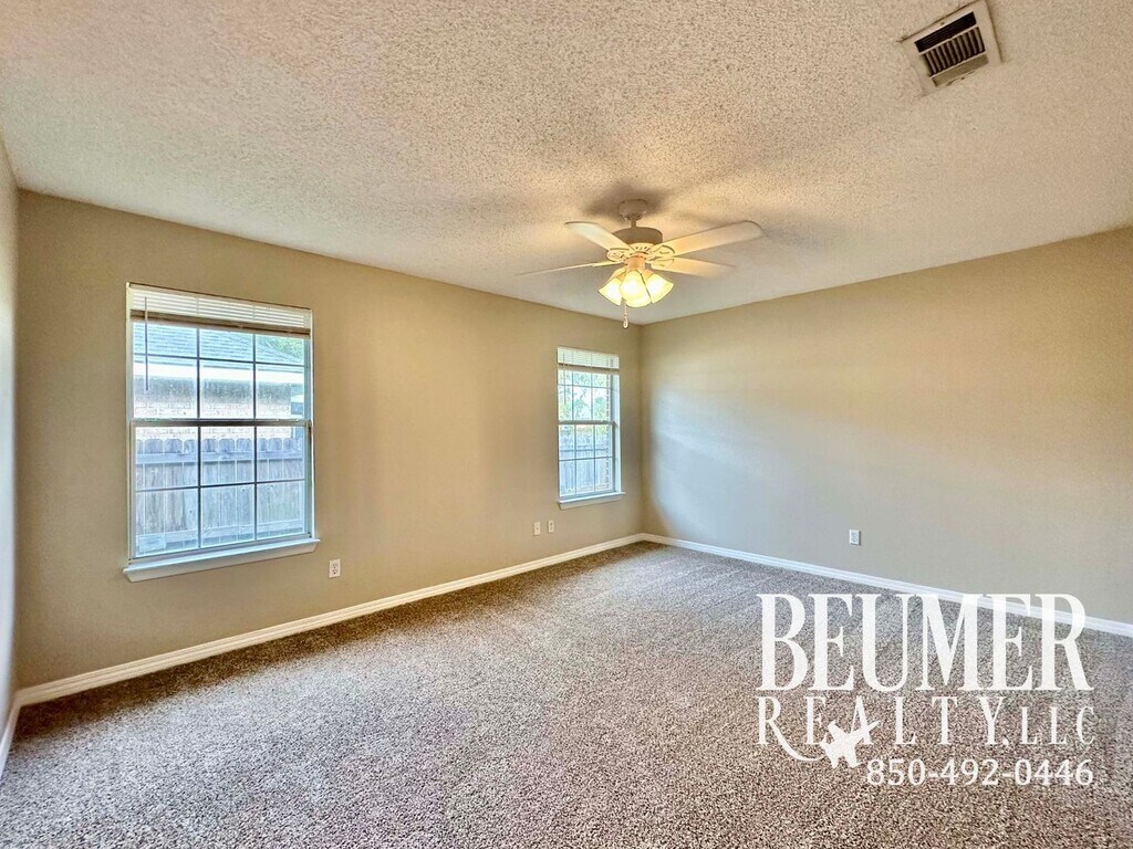 New Carpet and Fresh Paint! This 1,892-square-foot home offers a spacious and functional layout, including a large Florida room. The main living areas feature tile flooring. The open design includes a great room with cathedral ceilings that seamlessly flow into the kitchen and dining area, making it ideal for both everyday living and entertaining. In addition to the primary living spaces, the home includes two versatile rooms that can serve as a formal dining area, home office, playroom, or additional sitting area to suit your preferences. The spacious kitchen boasts ample cabinetry, a breakfast bar, a pantry, and an eat-in kitchen area. The primary bedroom features a generous en-suite bathroom with walk-in closets, his and her vanities, a garden tub with a shower, and a walk-in linen closet. The split floor plan positions two additional bedrooms on the opposite side of the home, sharing a hall bathroom that includes a single vanity, a tub/shower combination, and additional linen storage. French doors open to a bright and airy sunroom, offering flexible space for relaxation or year-round sunshine. Outside, enjoy the sizable fully fenced backyard, which includes a storage shed. Additional features include an indoor laundry area with hookups and a two-car garage. This home is conveniently located less than 3 miles to Corry Station, Naval Hospital; close to NAS downtown, Pensacola beach, Perdido Key, shopping and restaurants. Pets are permitted. Tenant responsible for maintenance and care of the yard. Tenant responsible for all utilities. No smokers. Dogs under 50lbs permitted with owner approval – $350 refundable pet fee per pet. No vicious breeds. Canine liability insurance is required. Elementary School: Pleasant Grove Middle School: Warrington High School: Escambia Application requires additional information (pay stub, rental reference, verification of Employment). Fee is $55 per adult over 18 years. Credit check, background check, and rental verification required. Property manager is looking for overall credit payments made on time, ensuring you are not overextended on credit, no civil judgments, and credit score, and debt to income ratio. Increased security deposit may be required. Call Beumer Realty for any questions