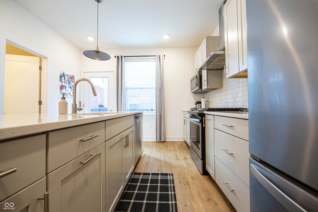 Discover contemporary living in this newer 2-bedroom,2.5-bath townhome,ideally located in the vibrant Fountain-Fletcher District. Featuring luxury vinyl plank flooring,quartz countertops,a spacious center island,and stainless steel appliances,this home offers high-end finishes throughout. The open living space provides beautiful city views,while the rear-entry garage adds convenience to urban living. This prime location offers easy access to Eli Lilly Corporate Headquarters,making it ideal for professionals. Enjoy the lively atmosphere of Fountain Square,known for its top restaurants,breweries,and entertainment. Downtown Indianapolis is just minutes away,providing quick access to Mass Ave,Monument Circle,and major attractions. Nature lovers will appreciate the proximity to Garfield Park,while those seeking a charming neighborhood feel will love Bates-Hendricks with its local cafes and easy highway access. Sports and eventgoers will also enjoy being near Lucas Oil Stadium and Gainbridge Fieldhouse. This Onyx & East townhome is move-in ready and perfect for those seeking stylish,low-maintenance urban living. Based on information submitted to the MLS GRID as of [see last changed date above]. All data is obtained from various sources and may not have been verified by broker or MLS GRID. Supplied Open House Information is subject to change without notice. All information should be independently reviewed and verified for accuracy. Properties may or may not be listed by the office/agent presenting the information. Some IDX listings have been excluded from this website. Prices displayed on all Sold listings are the Last Known Listing Price and may not be the actual selling price.