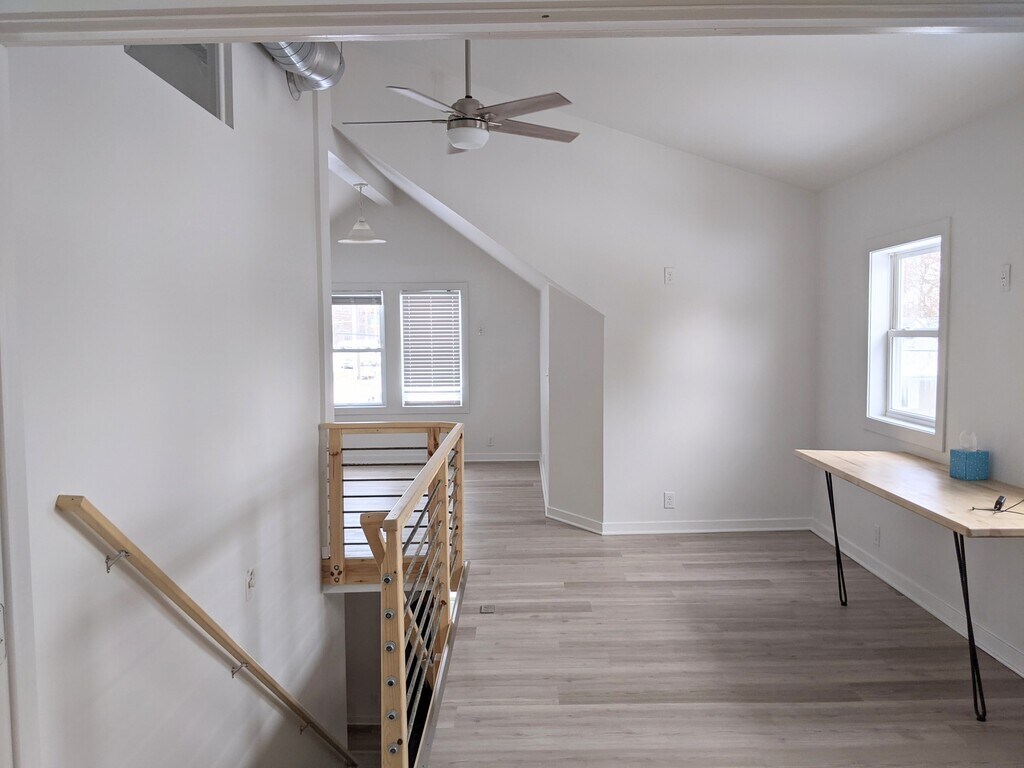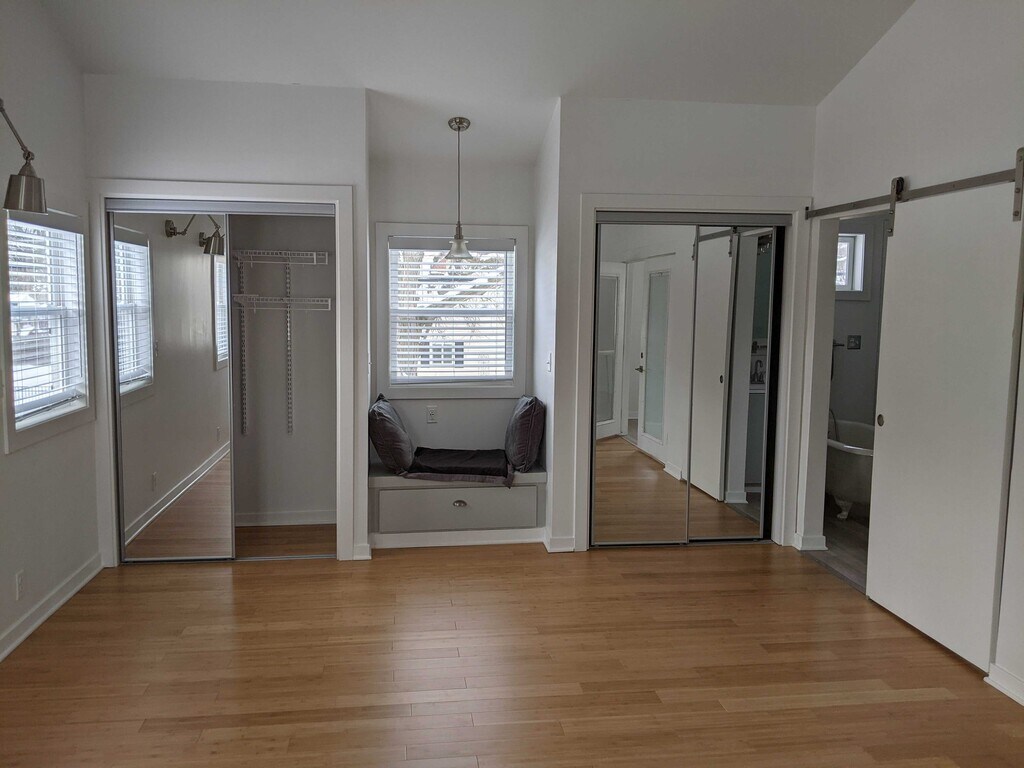 Cute remodeled bungalow in quiet northeast neighborhood. Prime location on bus route, close to freeway entrance, Medical Mile and downtown Grand Rapids. Washer, dryer, lots of storage, under sink reverse osmosis water filter, high speed internet, small garage, great neighbors, landscaped back yard, sun porch, and newer appliances including dishwasher and microwave. Smaller bedroom downstairs, Master Suite upstairs, plus bonus spaces upstairs. 1 bathroom up with claw foot tub and shower. Downstairs bathroom has a walk-in shower.