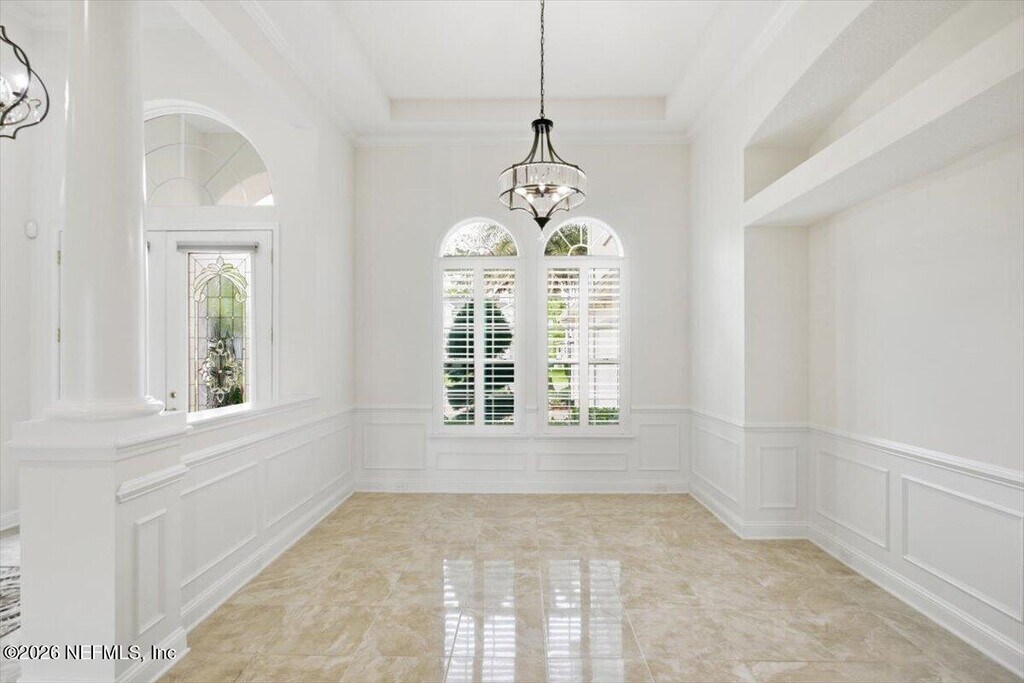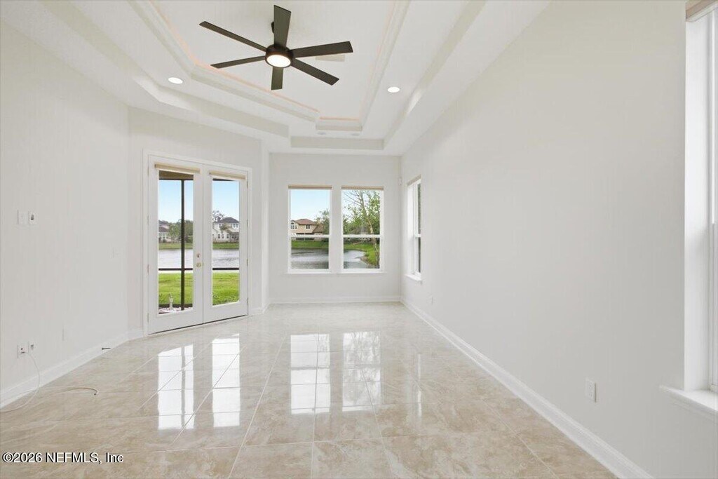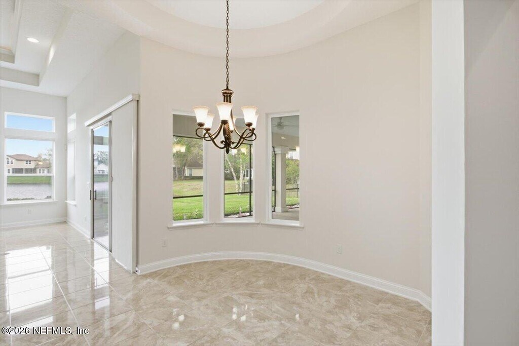 Nestled within the exclusive Julington Creek Estates,this stunning residence boasts an estate lot with breathtaking lake views. Spanning over 4,100 square feet,the home features an open floor plan that allows for lake vistas from the foyer,living room,family room,kitchen,and owner's suite. The first floor includes a formal dining room,an office,and two additional bedrooms,while the upper level offers a spacious bedroom or bonus room with an adjoining bathroom. Bathed in natural light from its picturesque windows and highlighted by a grand two-story ceiling,this remarkable home showcases custom finishes,elegant moldings,and a beautifully designed kitchen and bathrooms. Additional highlights include a large screened lanai and a three-car garage. The Julington Creek Plantation community is a master-planned development rich in amenities,featuring an aquatic complex with family pools,a competitive lane pool,a kiddie splash zone,a fitness center,a café,(see more...) a recreation center with basketball and tennis courts,baseball and soccer fields,a skate park,and an 18-hole golf course. MLS# 2139766