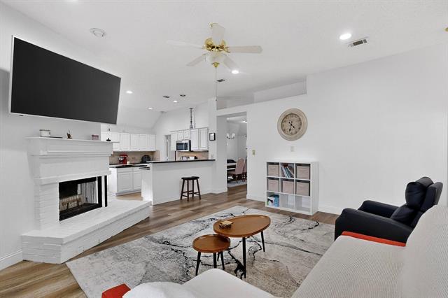 Exceptionally well maintained single-story home with 4 bedrooms & corner lot location with massive backyard! Located in Heritage Park with no HOA and within walking distance to schools! As you enter the home, you are greeted with formal living & dining, neutral colors, tons of natural lighting, new LVP wood look flooring in all living areas & newly installed base boards! Main living area features an open concept floor plan with corner brick fireplace & wall of windows overlooking the private backyard! Kitchen is equipped with wood cabinets, granite & bar area for extra seating! Secluded master retreat with vaulted ceilings & oversized bath with dual sinks, jetted tub, separate shower! Guest bedrooms are on other side of home offering additional privacy with share guest bath. The east facing backyard features evening shade, 8 foot fence, 10x8 storage shed, mature trees and extended patio. Fridge, washer and dryer included. Landlord offers $2500 monthly with a two year lease.
