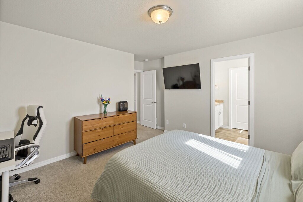 Welcome to this beautiful 3-bedroom, 2.5-bath home located in the highly desirable Ventana community in Fountain, Colorado. With 1,739 square feet of thoughtfully designed living space, this home offers modern finishes, open-concept living, and a spacious fully fenced backyard perfect for enjoying Colorado’s sunshine. Step inside to a bright and open main level featuring durable LVP flooring and a spacious living area that flows seamlessly into the kitchen and dining space. The kitchen is designed for both everyday living and entertaining, complete with granite countertops, a large center island with bar seating, gas stove, stainless steel appliances, pantry, and plenty of cabinet storage. Upstairs, you’ll find three comfortable bedrooms, including a generous primary suite with a walk-in closet and private bath featuring dual sinks. The laundry room is conveniently located and includes washer and dryer. Central A/C keeps the home comfortable year-round. Outside, enjoy a fully fenced backyard with sprinkler system and a cozy fire pit area, perfect for relaxing evenings or entertaining guests. The attached two-car garage provides additional storage and convenience. Located in the Ventana HOA community, residents enjoy access to a clubhouse, seasonal pool, gym, playground, and walking and running trails. Trash service is included through the HOA. Tenant is responsible for water, gas, electric, and other utilities. Conveniently located just minutes from Fort Carson, I-25, and Highway 85/87, with easy access to local dining, shopping, and schools. Close to charming local favorites like Olde Town Coffee, Sliced Bagels, the Fountain Library, and more. Dogs and cats are welcome. Homes in this neighborhood move quickly. Schedule your showing today and make 7430 Alatna Place your next home!
