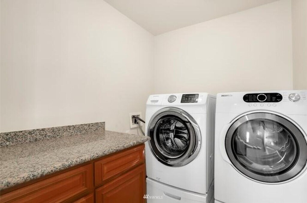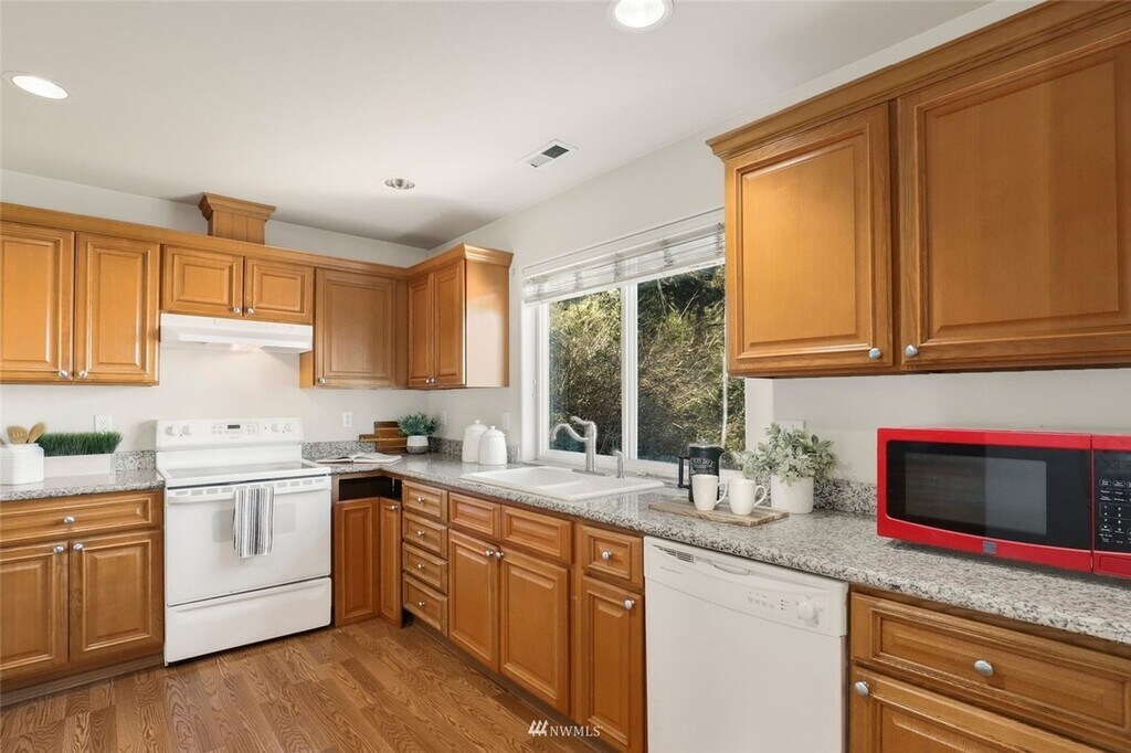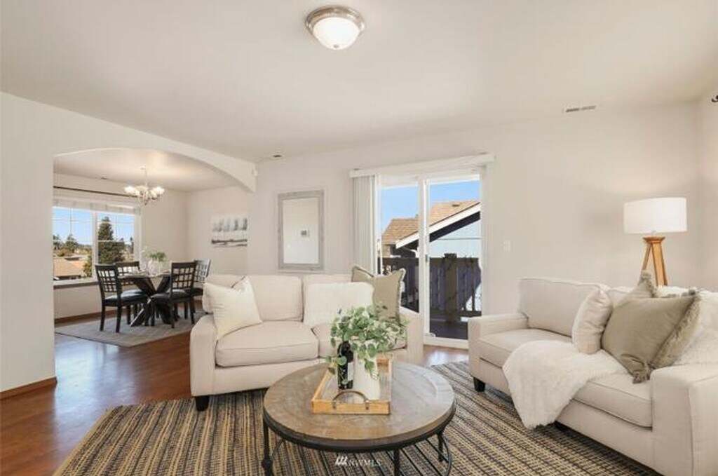 Discover one of the largest homes in the neighborhood, ideally located at the end of a quiet cul-de-sac. This spacious residence features a low-maintenance yard with peek-a-boo views of the Olympic Mountains and stunning sunset backdrops. The expansive deck off the living and dining areas is perfect for outdoor entertaining. Inside, you’ll find an inviting layout with a generous kitchen boasting granite countertops and an open flow to the dining room. All bedrooms—along with a roomy laundry area—are conveniently situated on the upper level. The bright, open family room includes recessed archways and a cozy gas fireplace with a tile surround. A two-car garage provides ample parking plus extra space for a workshop or additional storage. This home offers comfort, convenience, and room to spread out—don’t miss it! Requirements: 3x rent income 625+ credit scores 4 years of rental history $100 Admin Fee #3299