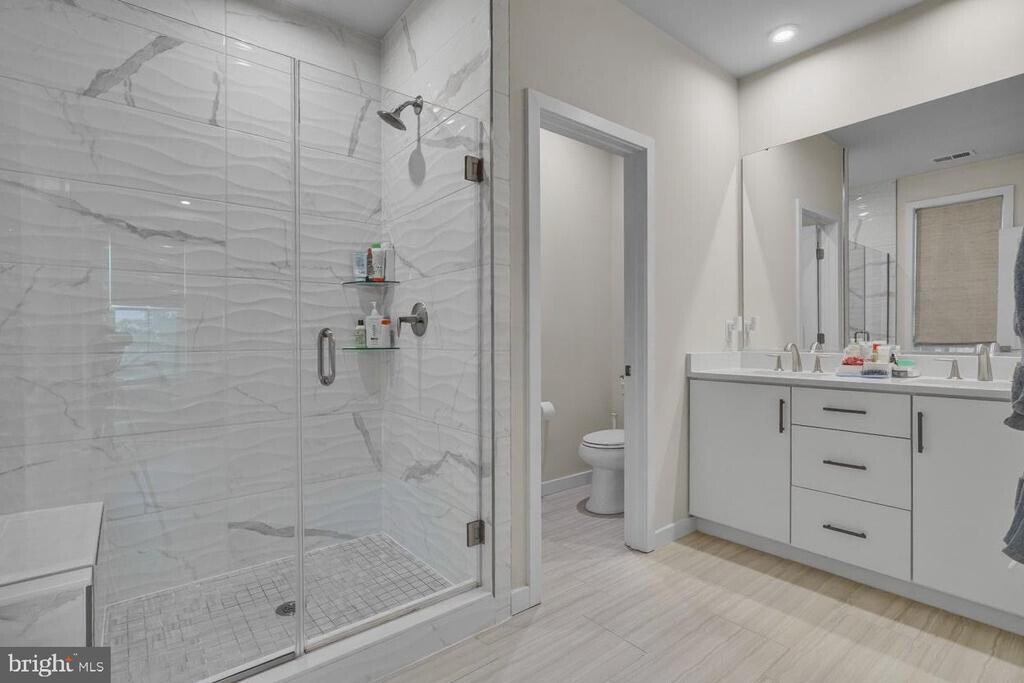 This stylish 3-bedroom, 2.5-bath townhome-style condo offers a blend of contemporary design, comfort, and convenience in one of McLean’s most desirable neighborhoods. This corner unit offers an open-concept main level featuring a spacious living room flowing into a designer kitchen with a large center island, quartz countertops, and premium stainless-steel appliances. Ample natural light, recessed lighting, and sleek finishes create a modern, airy feel that’s perfect for entertaining. A convenient powder room and direct access to an attached 1-car garage (with driveway space for an additional vehicle) complete this level. Upstairs, the luxurious primary suite offers a tray ceiling, generous walk-in closet, and spa-inspired bathroom with a frameless glass shower and dual vanities. Two additional light-filled bedrooms each feature walk-in closets, and a separate laundry area with built-in cabinetry adds daily convenience. Elegant details such as hardwood floors, tall ceilings, and a smart thermostat enhance everyday living. Situated in Union Park at McLean, this home places you within walking distance of Capital One Center (with Capital One Hall and The Perch rooftop park), Wegmans, the Archer Hotel, and multiple cafés and restaurants. Need something quick from the grocery store? Safeway is less than a 5-minute walk from the front door. Nearby Westgate Park, Olney Park, and Scotts Run Nature Preserve offer scenic green spaces for relaxation and recreation. Commuters will love the easy access to the Silver Line McLean Metro station (just a 10-minute walk or 2-minute drive) and major routes (I-495, I-66, Route 123). This move-in-ready McLean rental delivers modern luxury living with unbeatable walkability to shopping, dining, and parks. An ideal blend of urban convenience and suburban calm.