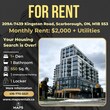 There is currently a 1 Bed 1 Bath Apartment for rent with 550 listed at 7439 Kingston Rd. It is Available January 1, 2026.