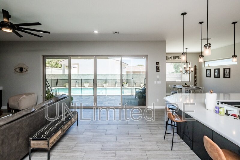 AVAILABLE 1 year lease! 5 bedrooms! One main bedroom and bath on main level. Gourmet kitchen! Pool and walled yard. Double wide RV garage. Level Driveway. Prime location in Lake Havasu City close to town and the lake!