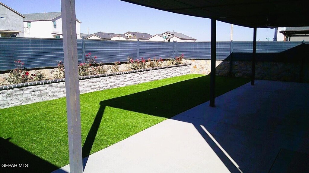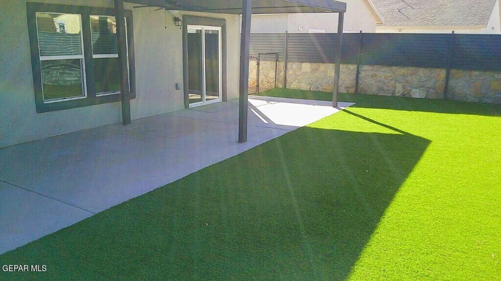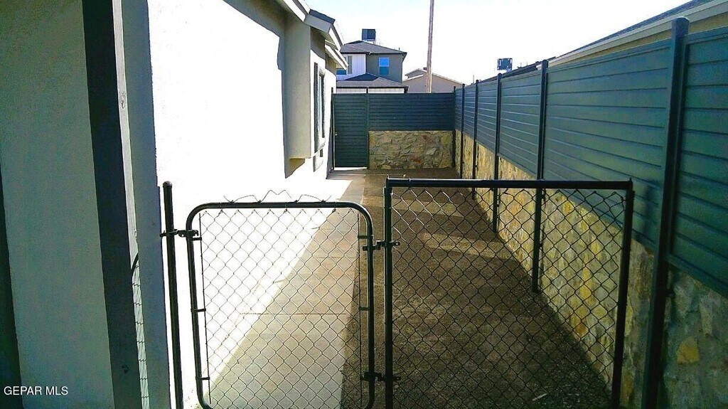 Immaculate single level Northeast home with refrigerated air located in quiet neighborhood. Home features living area,dining area,three bedrooms,two full bathrooms & two car garage. Among the many amenities included are shutters,ceiling fans,granite counter tops,pantry,full stainless steel kitchen appliance package,master bedroom walk in closet,master bathroom double vanity,master bathroom garden tub,laundry closet,back covered patio,backyard privacy fencing,dog run,garage door opener,garage door opener remotes,front two car carport & much more. Front and back yards are professionally landscaped. Home is located close to parks,schools,shopping,freeway access & Fort Bliss. Come view this home today as it ready for quick move in!