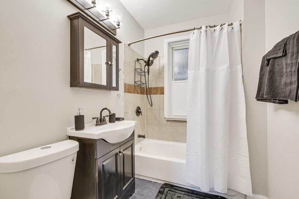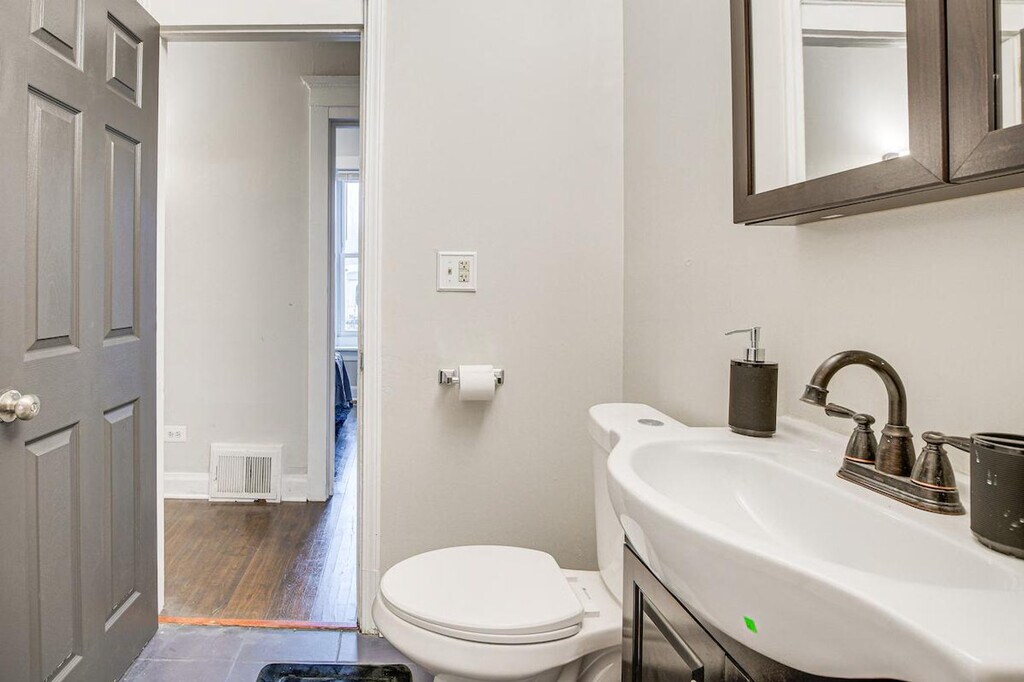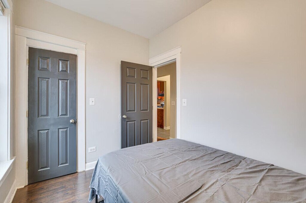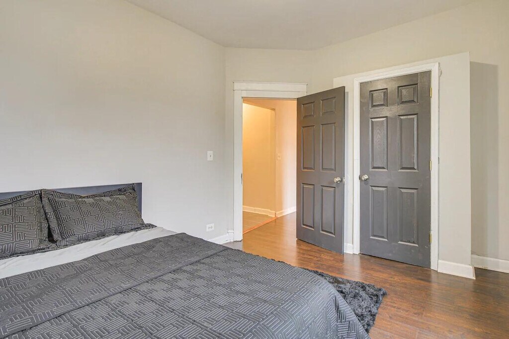 Feel at home in this single-story, 3-bedroom apartment, located on the 2nd floor of the building and accessible via an exterior staircase. It offers 1,875 square feet of living space and is located 10 miles from downtown Chicago. The apartment features a kitchen equipped with a stove/oven, microwave, cooking basics, drip coffee maker, blender, and air fryer. For entertainment, there is a Smart TV and an electric fireplace. Stay connected with free Wi-Fi, and enjoy the comfort of central air conditioning and heating. Linens and towels are provided. Shared amenities include coin laundry and a yard. Located just minutes from iconic spots like the Chicago Museum of Science and Industry, this apartment makes a great home base for exploring. Take the train to visit Millennium Park downtown or cheer on the Bears at Soldier Field. Long-term tenants live on-site in separate units and may be present during your stay. Quiet hours are observed from 8:00 PM to 8:00 AM. No events, parties, or large gatherings are allowed. No pets are allowed. There is no smoking allowed. [SI]