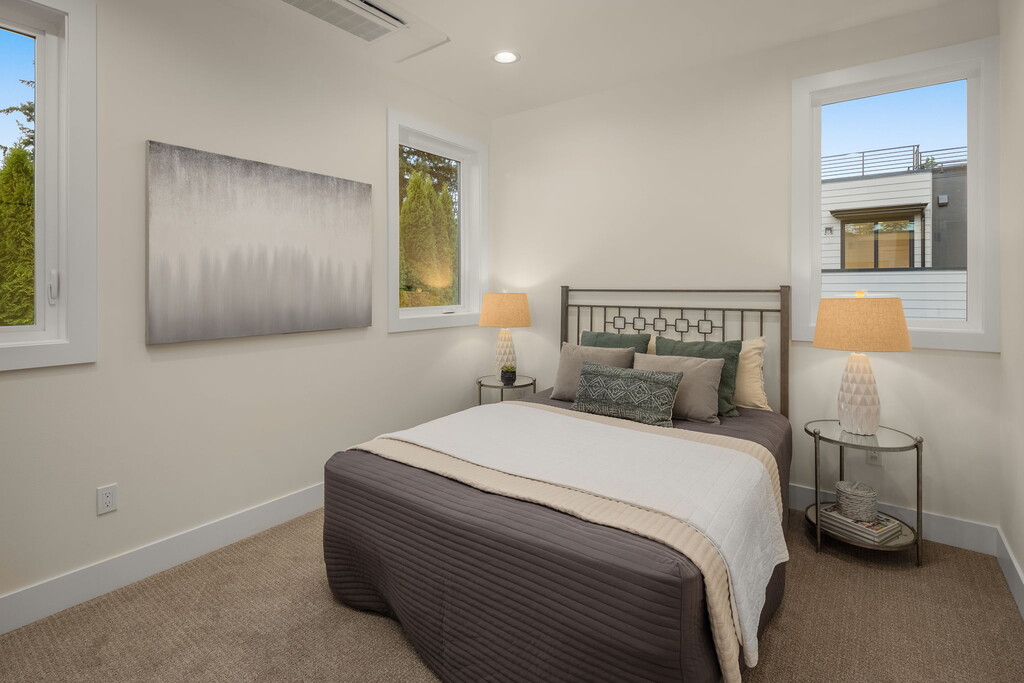Be the first to live in this brand new, modern 2-bedroom, 2.25-bathroom home in Kirkland's highly desirable West of Market neighborhood. Thoughtfully designed with style and comfort in mind, this home features an open layout, high-end finishes, smart technology, and exceptional outdoor living spaces. Private Rooftop Deck: Enjoy sweeping views of Lake Washington and the Seattle skyline. Chef's Kitchen: Custom cabinetry, premium appliances, and designer tile backsplash. Luxurious Primary Suite with A/C: Spa-like bath and a spacious walk-in closet. Outdoor Living: Private fenced patio with new slider door, perfect for entertaining. Smart Home Ready: Alexa-enabled switches, Ring doorbell, keyless entry, and Ring security cameras for modern convenience and peace of mind. Private EV Vehicle Charging: Dedicated parking spot equipped with easy electric vehicle charging. Brand New: Never lived in. Just steps from Waverly Beach Park and minutes to downtown Kirkland's shops, restaurants, and marina. Part of the award-winning Lake Washington School District. Note: Home comes unfurnished. Blinds are installed and yard is fenced in with low maintenance landscaping. Lease Duration: 12-month minimum lease required Move in date: Move in by 10/31 to get this rate Move-In Costs: Security deposit and last month's rent due at signing Pets: No pets allowed Smoking: No smoking permitted anywhere on the property Utilities: Renters are responsible for gas, electric, garbage, water, and sewer Yard Maintenance: Renters are required to maintain yard Renter's Insurance: Required- proof of active policy must be provided prior to move-in. Policy must include a minimum of $100,000 in liability coverage and be maintained throughout the lease term.