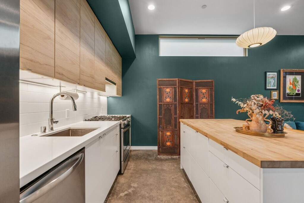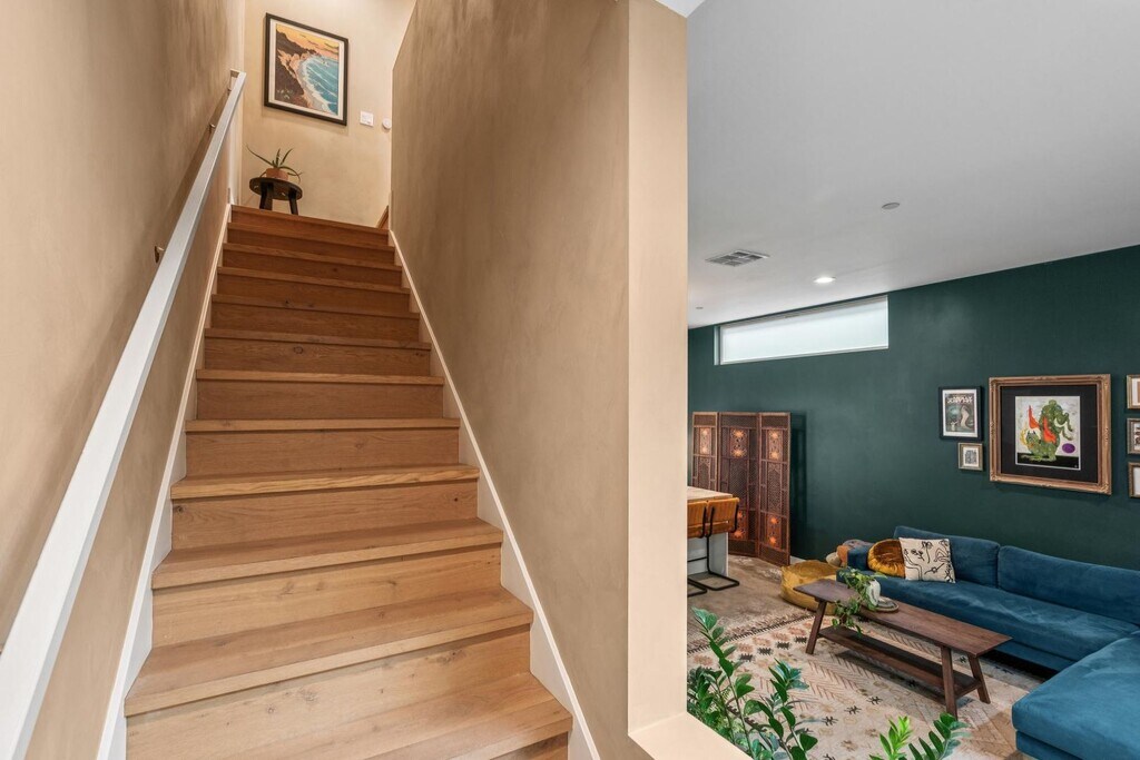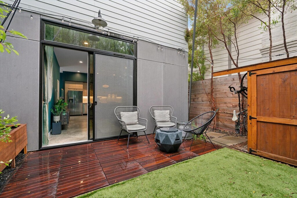 Tucked behind a gated entry, this unfurnished, 3bd/2ba, tri-level home is located in a prime location just three blocks from Temescal’s vibrant dining scene, BART and easy highway access. Thoughtfully designed with a modern aesthetic, the home blends clean lines with bright, curated finishes including hand-stenciled wallpaper and natural lime wash walls. The main level features a sleek kitchen with light oak cabinetry, stainless steel appliances and a large center island with bar seating, perfect for entertaining. The spacious living room moves seamlessly to a totally private and enclosed patio with mature garden. Gas BBQ ok. Storage shed great for bikes and gear. Two bedrooms, a full bath, and laundry are located on the second level, while the upper floor features a grand loft-style primary suite with beautiful en suite bathroom and walk-in closet. Available mid May. Pet considered with references. Tenant pays all utilities.