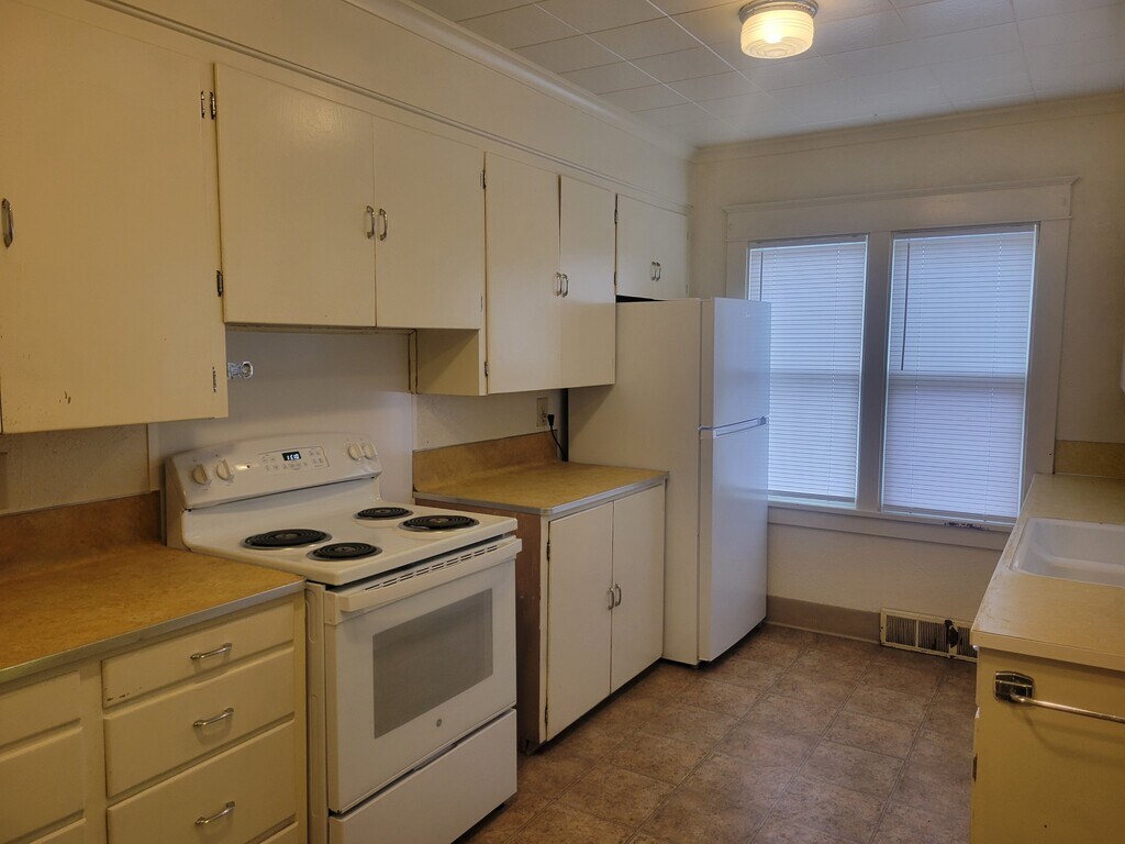 Lovely slant street 2 bedroom house on a large corner lot with a partially fenced yard and a detached single garage. The main floor hosts 2 bedrooms and a full bathroom. The wood floor has just been refinished. The spacious basement was just painted and has w/d hookups and ample storage space. U/G sprinklers. Location, location, location as this property is the ideal distance from downtown while still offering the intimacy of a neighborhood feel. It is very walkable to the hip strip, the riverfront trail system, and downtown. Pets considered with references, pet deposit and pet rent. Ideal tenant has a credit score of 700+, 2+ yrs rental history, no criminal record, income of at least double the asking rent. This property is a month to month lease, with a 3 month minimum. Applications online at by following the rental link. Tenants pay for gas, electric, water & sewer, snow removal and lawn care. Owner pays for garbage.