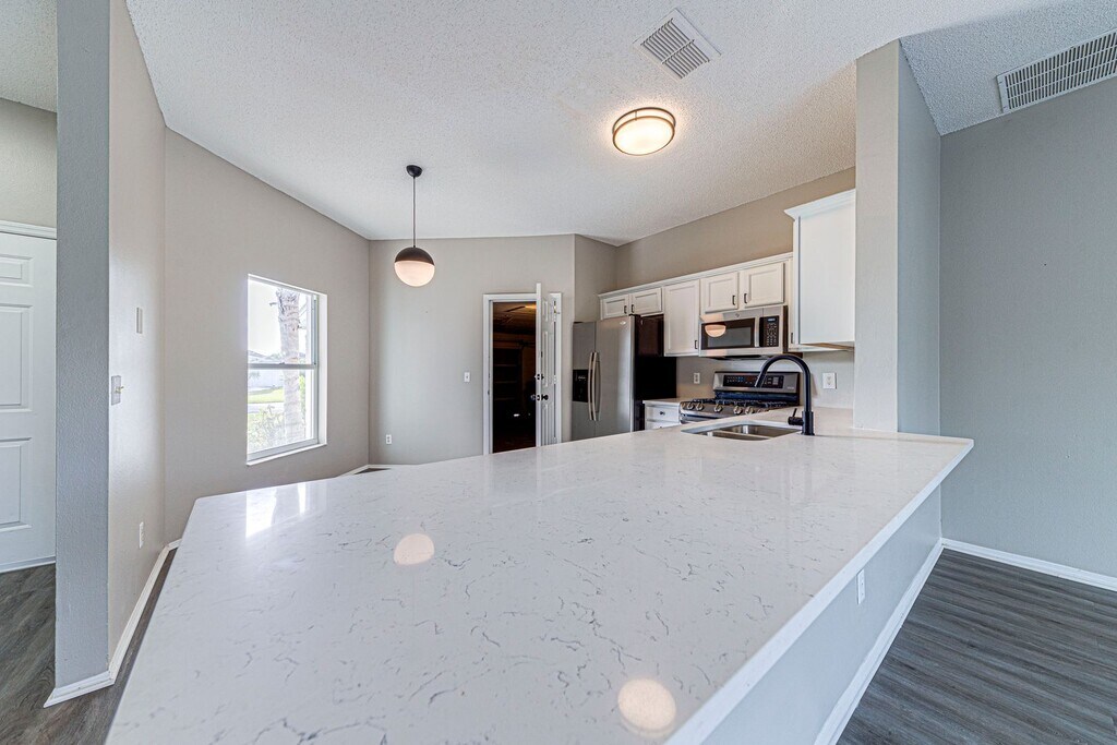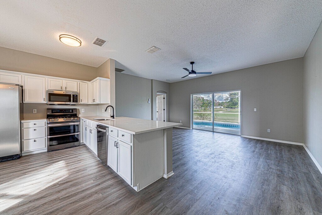 Welcome to an exceptional modernized residence, nestled in a vibrant community. This stunning home is perfectly positioned along the lush fairway of Polo Park East Golf Course, offering an extraordinary lifestyle. Step inside the meticulously upgraded 3-bedroom, 2-bathroom home, a canvas for your dream life, whether you're envisioning hosting friends or creating unforgettable family gatherings. Luxury vinyl wood plank flooring guides you through well-lit living spaces, leading to a private outdoor oasis overlooking the Golf course, perfect for cherished moments. The kitchen is a gem, equipped with stainless steel appliances and seamlessly integrated with the living area. The primary suite is your personal retreat, featuring an inviting soaking tub and shower combination, a generous walk-in closet, and dual sink vanities. Additional features include a BRAND NEW A/C unit, a 2018 Roof, and a resurfaced pool. This home exudes style and sophistication and is conveniently close to grocery stores, major highways, hospitals, shopping, and dining. Nestled in Central Florida, near Disney, this is a MUST-SEE opportunity to step into a world of unparalleled luxury and comfort. Your dream lifestyle awaits!