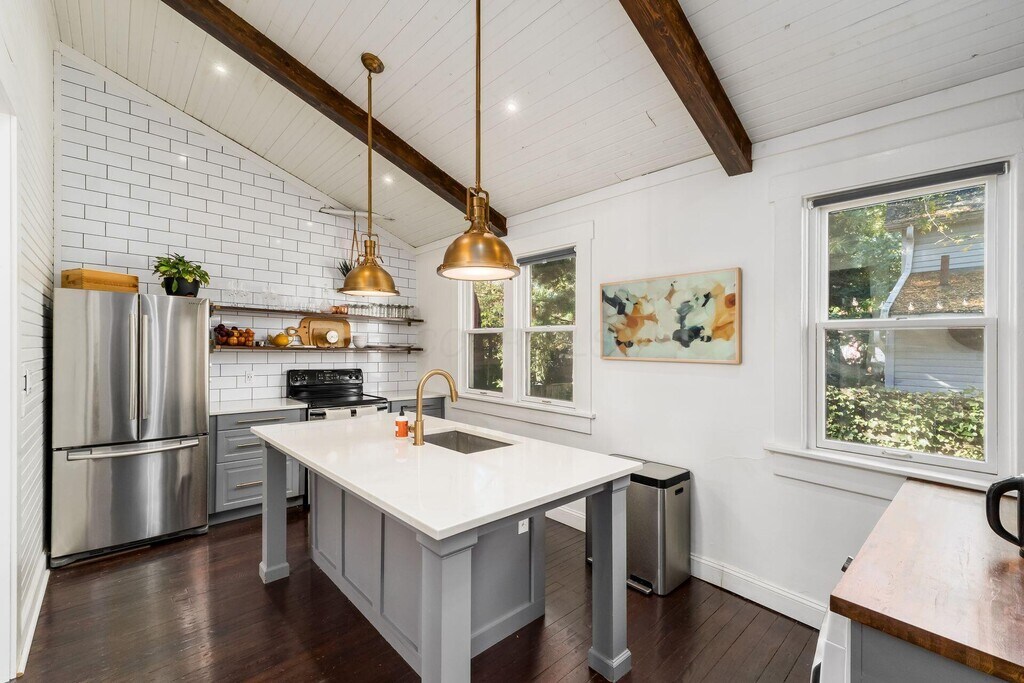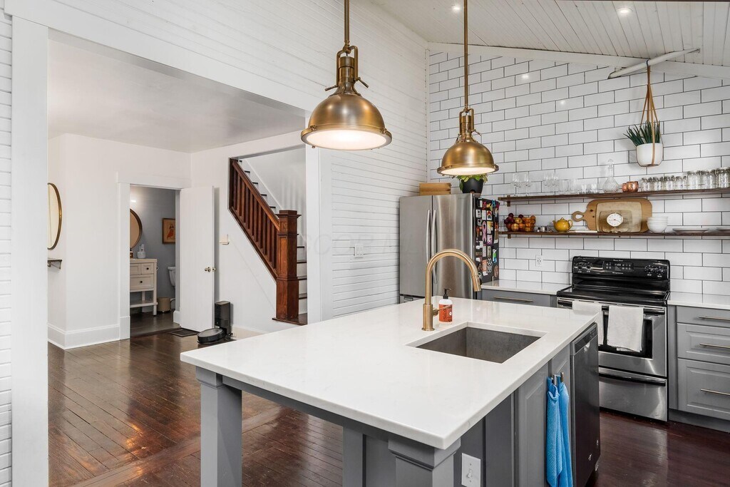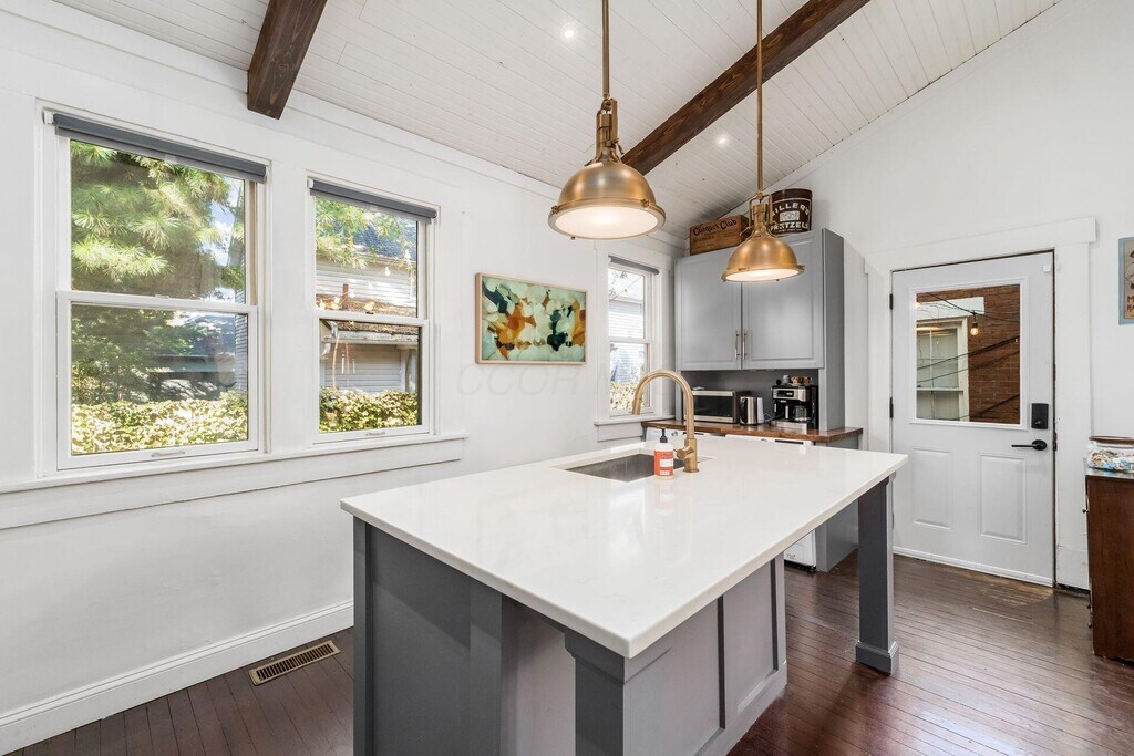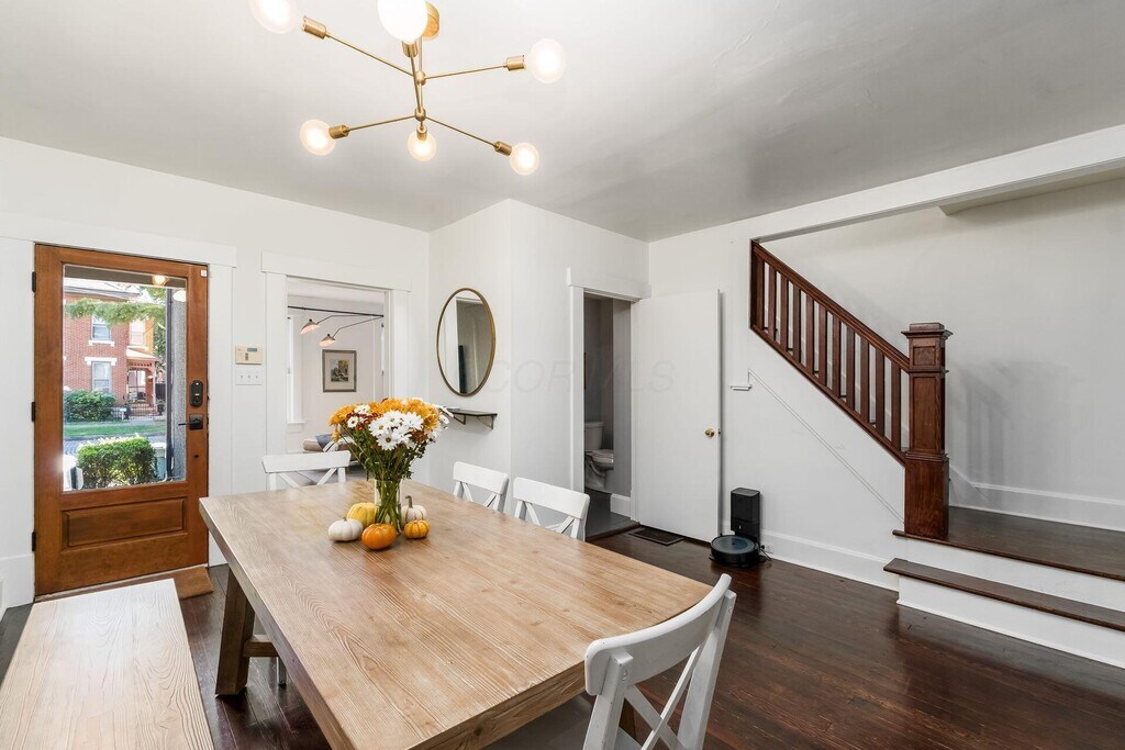 Nestled in the heart of historic German Village,this charming home offers the perfect blend of classic character and modern updates. Located nearby local favorites like Lindey's,Barcelona,and Schmidt's,you'll enjoy the true pedestrian friendly village lifestyle—restaurants,coffee shops,and boutique shopping right at your doorstep. Inside,you'll find an inviting floor plan featuring an updated kitchen and baths,along with fresh interior paint that creates a clean,modern feel. The warmth of rustic hardwood floors runs throughout both the first and second levels,complemented by sophisticated lighting and timeless architectural details that add a touch of elegance. Upstairs,both bedrooms are generously sized with ample closet space,offering comfort and functionality. Step outside to a private,fenced rear yard with a large deck complete with built-in seating and a fire pit table —perfect for entertaining or relaxing under the stars. Move-in ready and full of charm,this fantastic starter home captures everything to love about living in German Village.